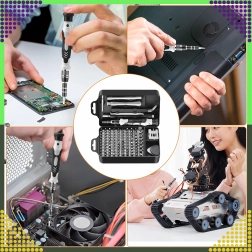 Komplexní výběr bitů a nástrojů pro elektroniku, hodinky, brýle i domácí zařízení. Vše v jednom přehledném pouzdře pro rychlou a efektivní práci.