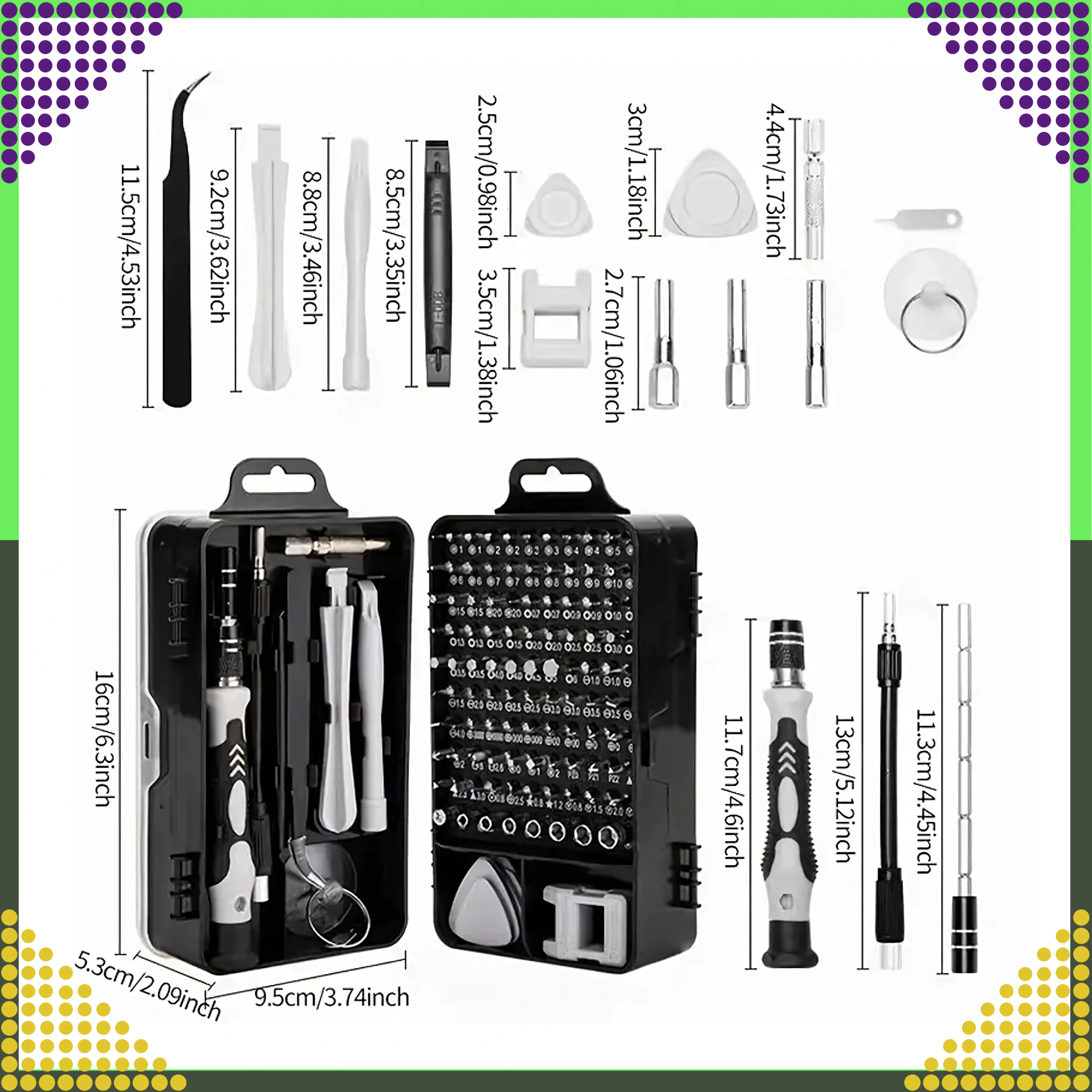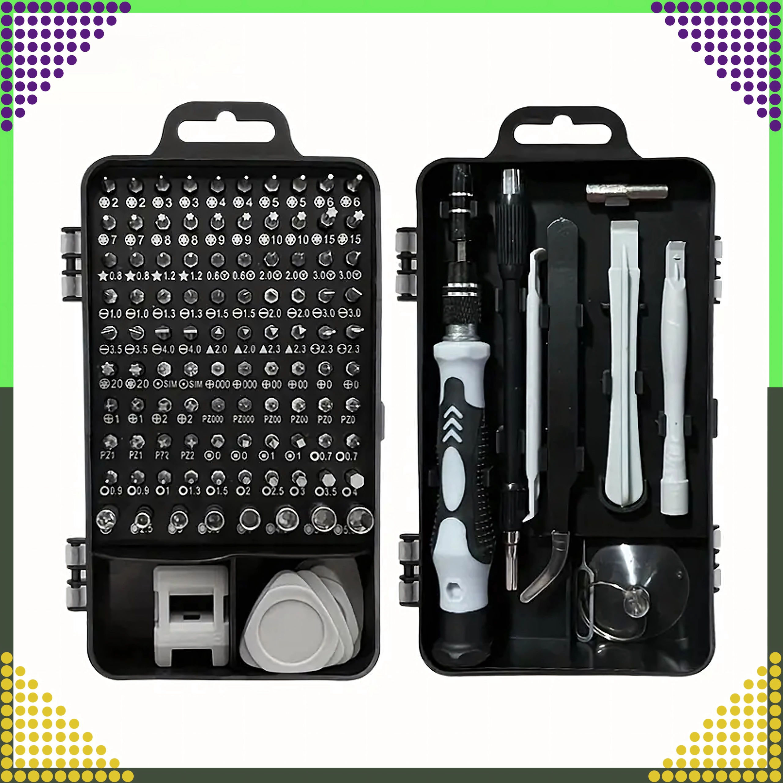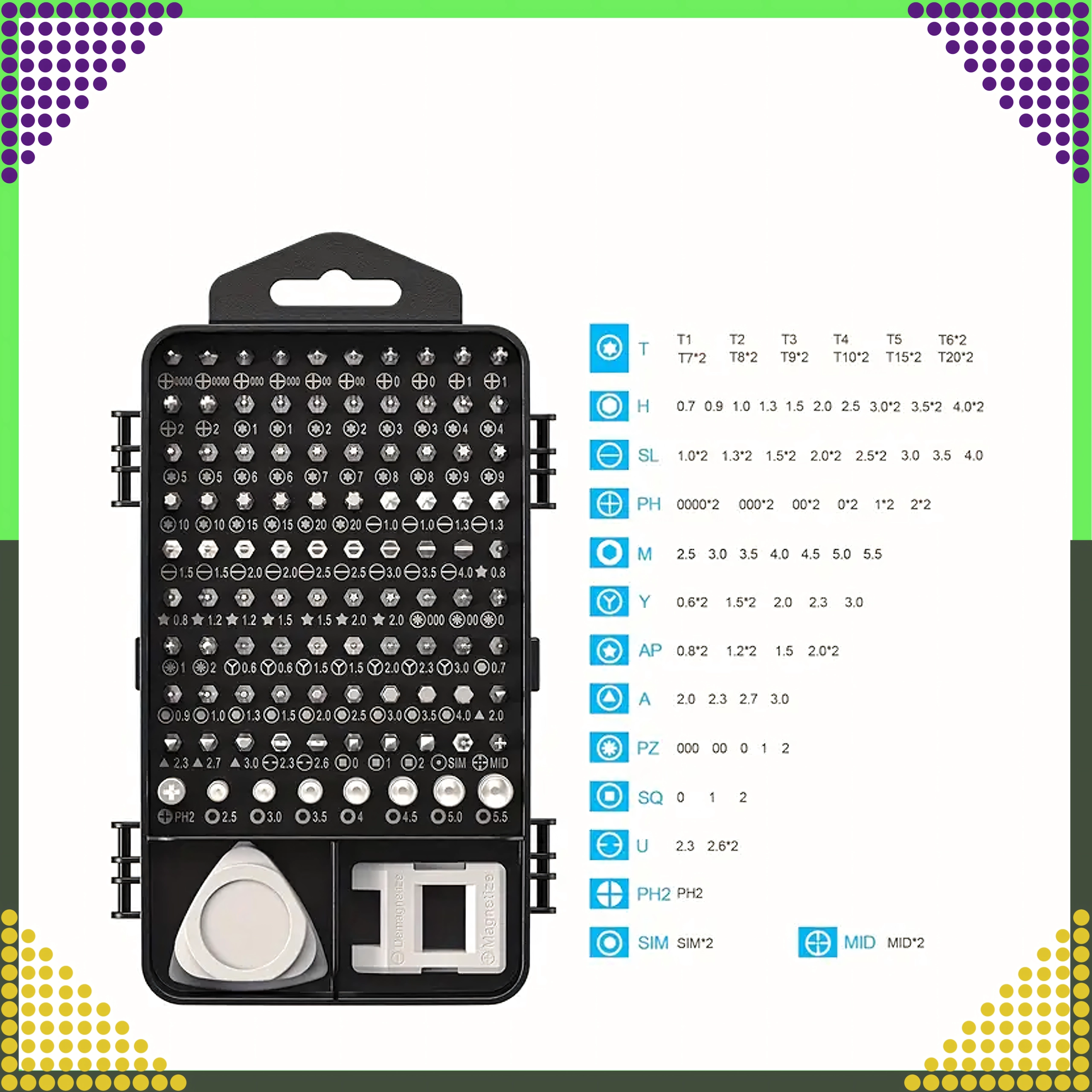 Hledáte jeden set na všechno? Tato sada 115 v 1 kombinuje široký výběr přesných bitů s praktickými nástroji pro bezpečné otevírání zařízení. Vše je uloženo v kompaktním dvoukřídlém pouzdře, které zajišťuje pořádek, rychlý přístup a snadné přenášení.