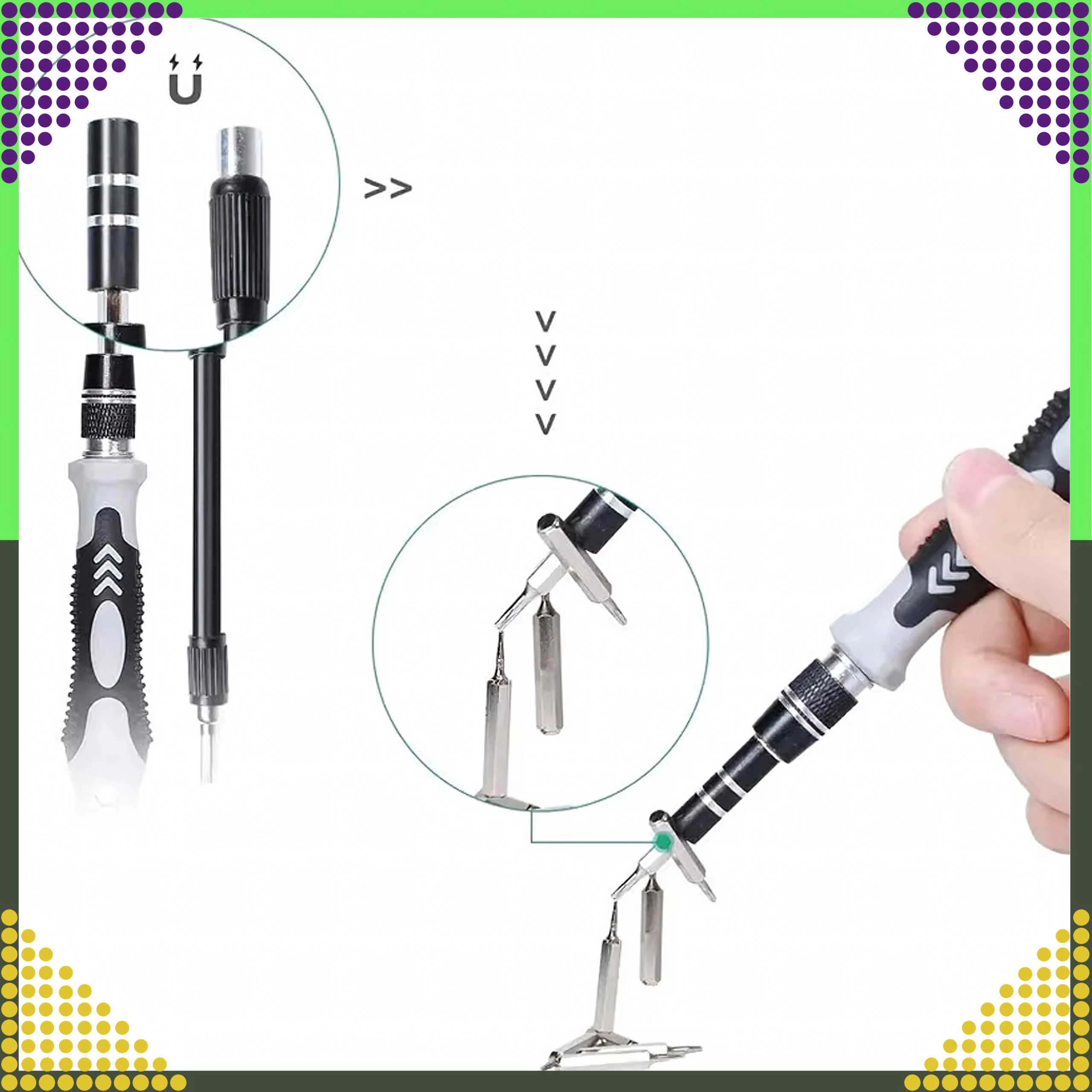 - Široká kompatibilita – TORX, Philips, ploché a další bity pro většinu zařízení.