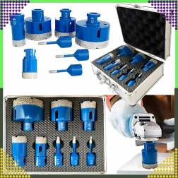 Tato profesionální sada diamantových otvorových korunek je navržena pro rychlé a čisté vrtání do tvrdých materiálů. Díky různé škále průměrů pokryje většinu instalačních a dokončovacích prací v koupelnách, kuchyních i na stavbě. Robustní konstrukce a diamantová povrchová úprava přinášejí dlouhou životnost a stabilní výkon.