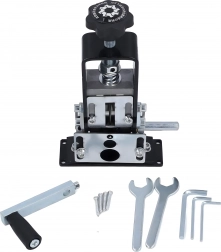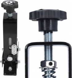 Masivní kovový rám s možností upevnění ke stolu poskytuje stabilitu při práci a dlouhou životnost i v náročných podmínkách.