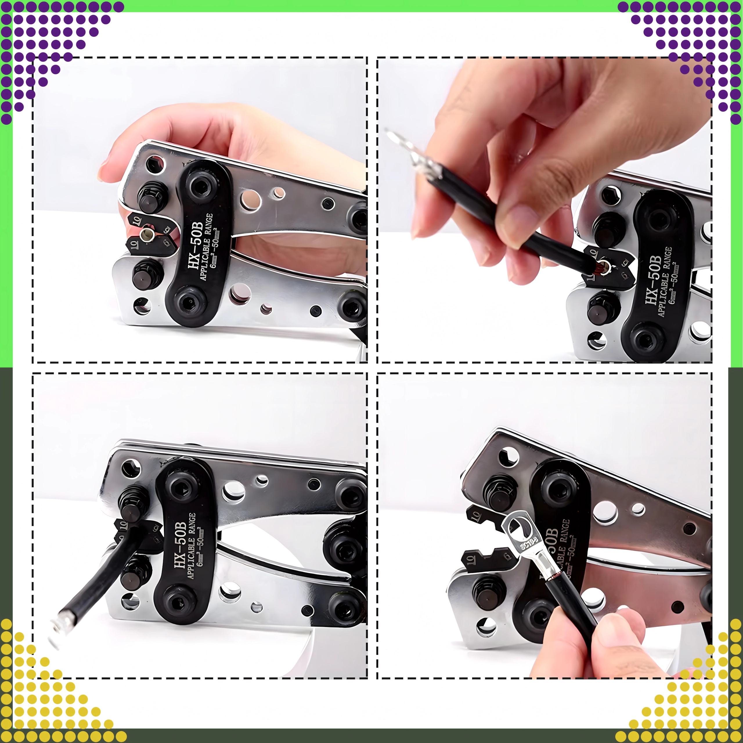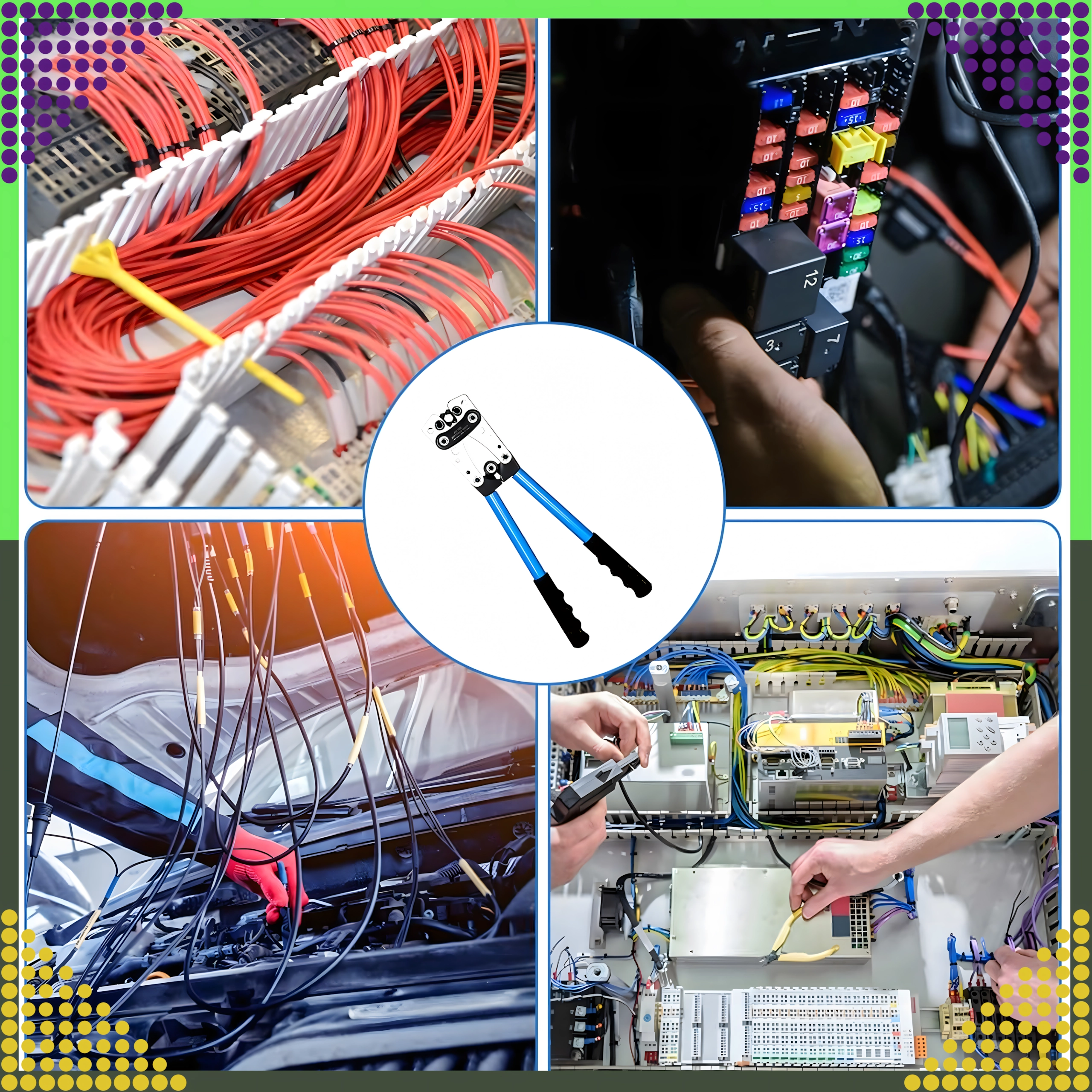 Ocelová, těžkotonážní konstrukce s dlouhými rameny a protiskluzovými úchopy zvyšuje komfort i bezpečnost práce v rozvaděči, dílně i na montáži. Nástroj je vhodný pro měděné a hliníkové kabelové oka a dutinky, ideální pro elektrikáře, mechaniky i náročné hobby použití.