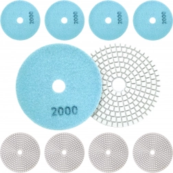 Profesionální sada 10 diamantových lešticích kotoučů o průměru 80 mm pro přesné broušení a leštění gresu, keramiky, kamene, mramoru i žuly. Kotouče umožňují práci na sucho i na mokro a díky uchycení na suchý zip je jejich výměna rychlá a pohodlná. Zrnitost 2000 pro jemné dokončovací práce s vysokým leskem.