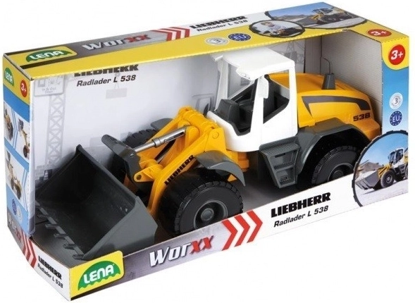 Licencovaný dětský nakladač LIEBHERR od LENA přináší realistickou stavební zábavu doma i venku. Díky pohyblivé lžíci a rameni snadno nabírá písek či kamínky a samostatně pohyblivá přední kola dělají jízdu zábavnou a plynulou. Odolná konstrukce z kvalitního plastu a kovové osy kol o průměru 6 mm zaručují dlouhou životnost i při intenzivním hraní.