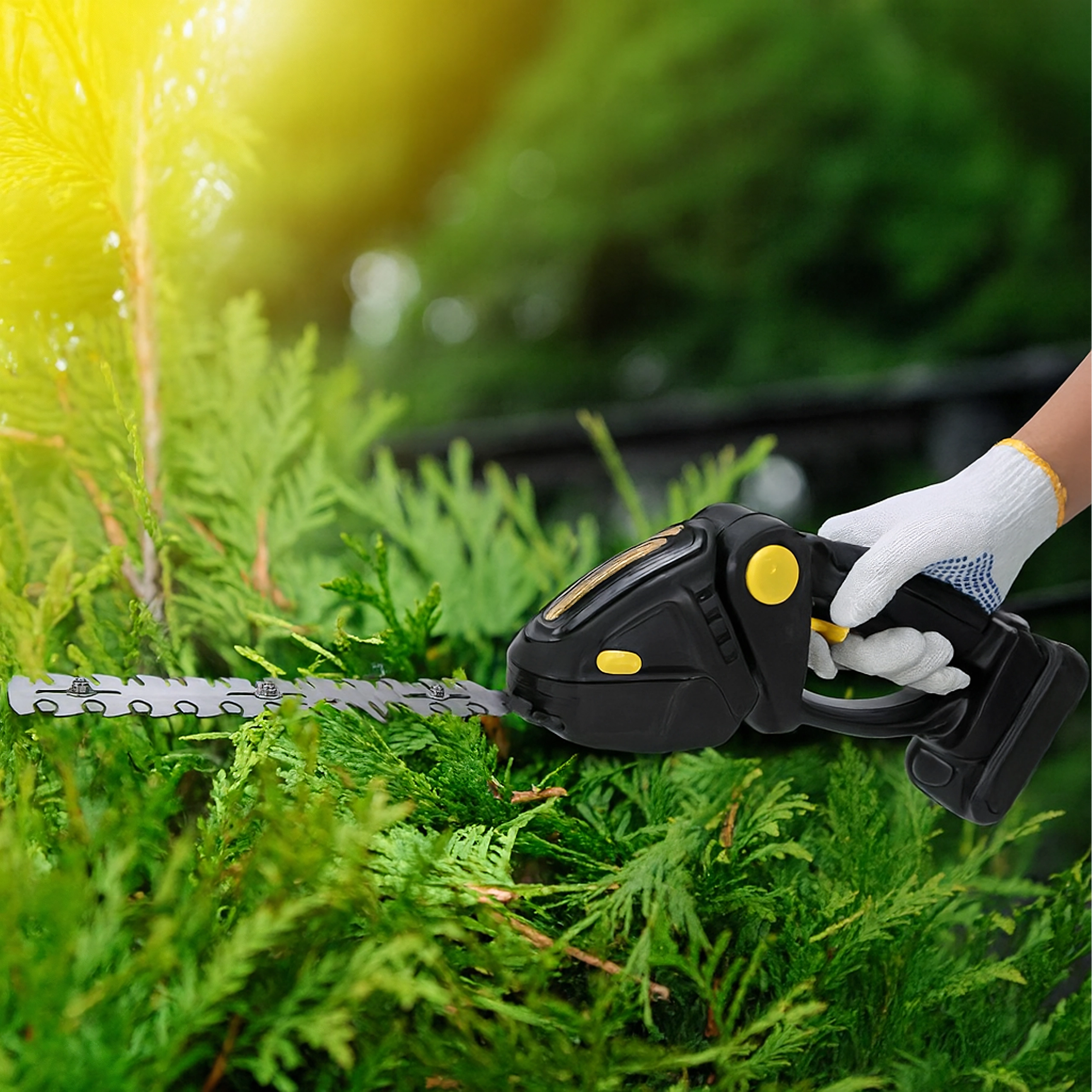 Univerzální zahradní nůžky 2 v 1 vám umožní přepínat mezi pilkovým nožem na živé ploty a širší lištou na trávu. Ergonomická rukojeť, bezpečnostní spoušť a vyvážené těžiště zajišťují jistý úchop i při delší práci. Bez kabelu a s dvojicí baterií zvládnete údržbu celé zahrady bez zbytečných přestávek.