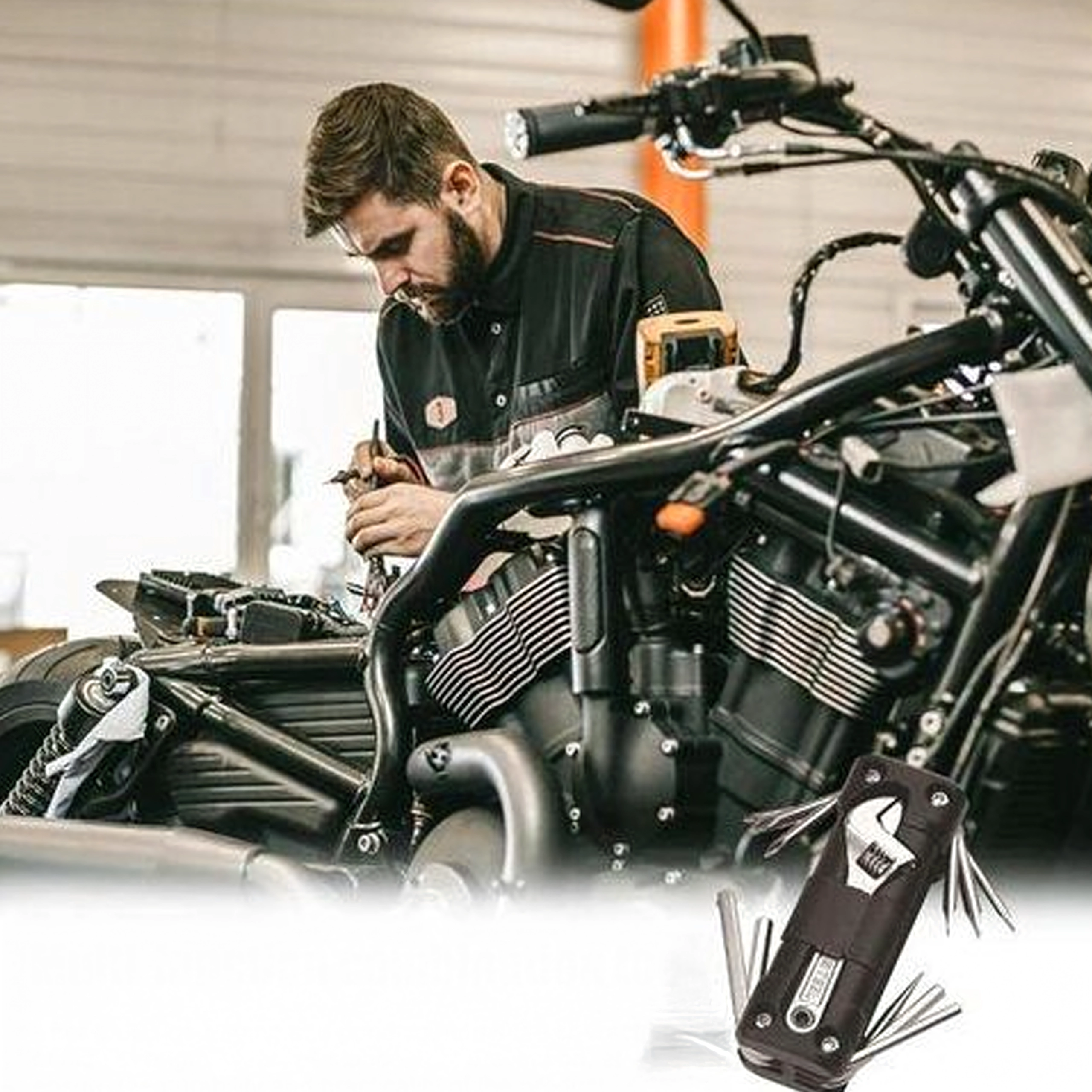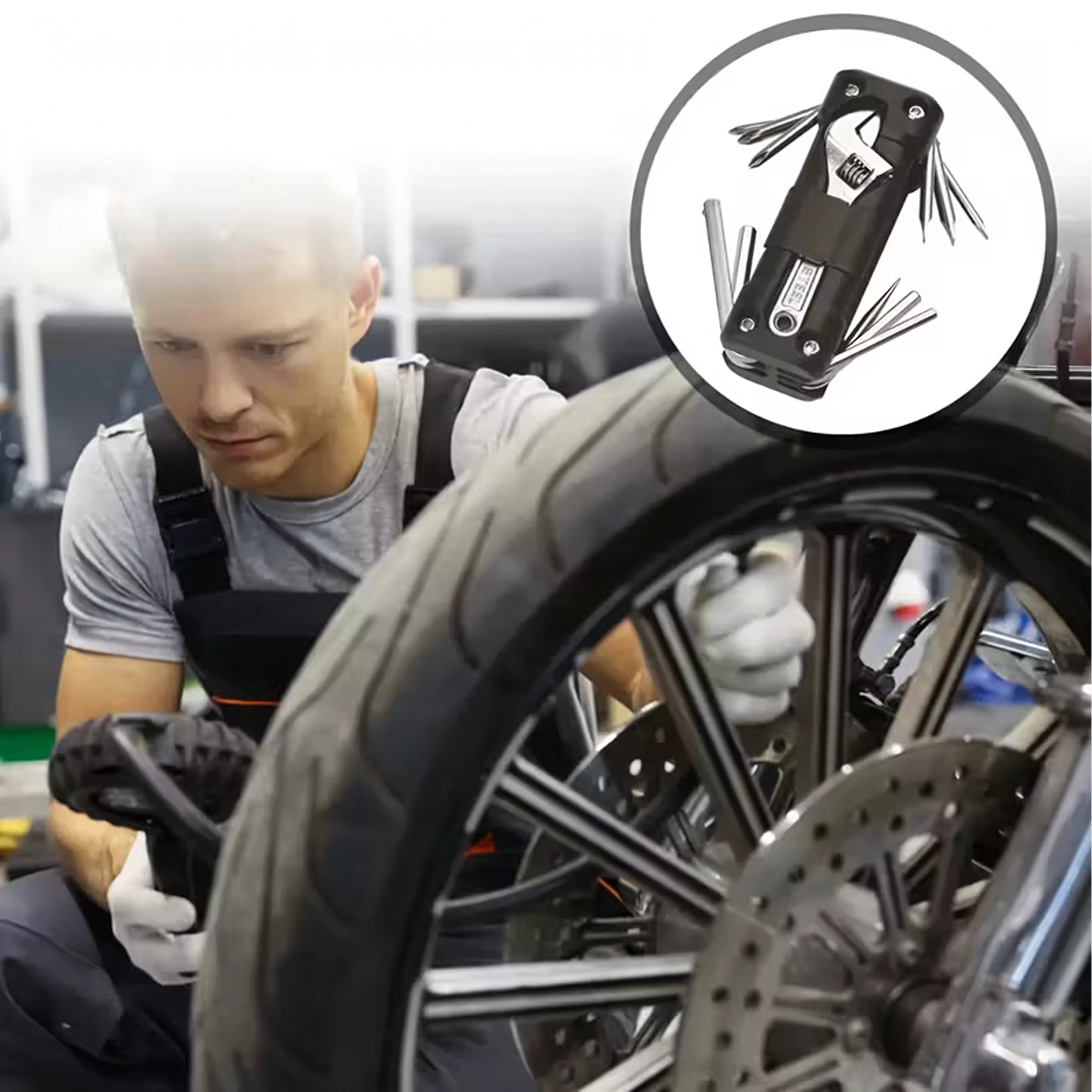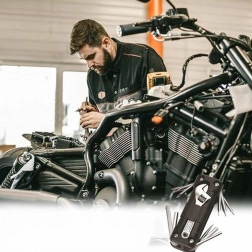 Obsahuje výběr nejčastěji používaných imbusů, šroubováků a klíčů, včetně nastavitelného klíče a příslušenství pro rychlé zásahy na kole, motorce či v dílně. Je to spolehlivý pomocník pro každodenní údržbu i nečekané situace.
