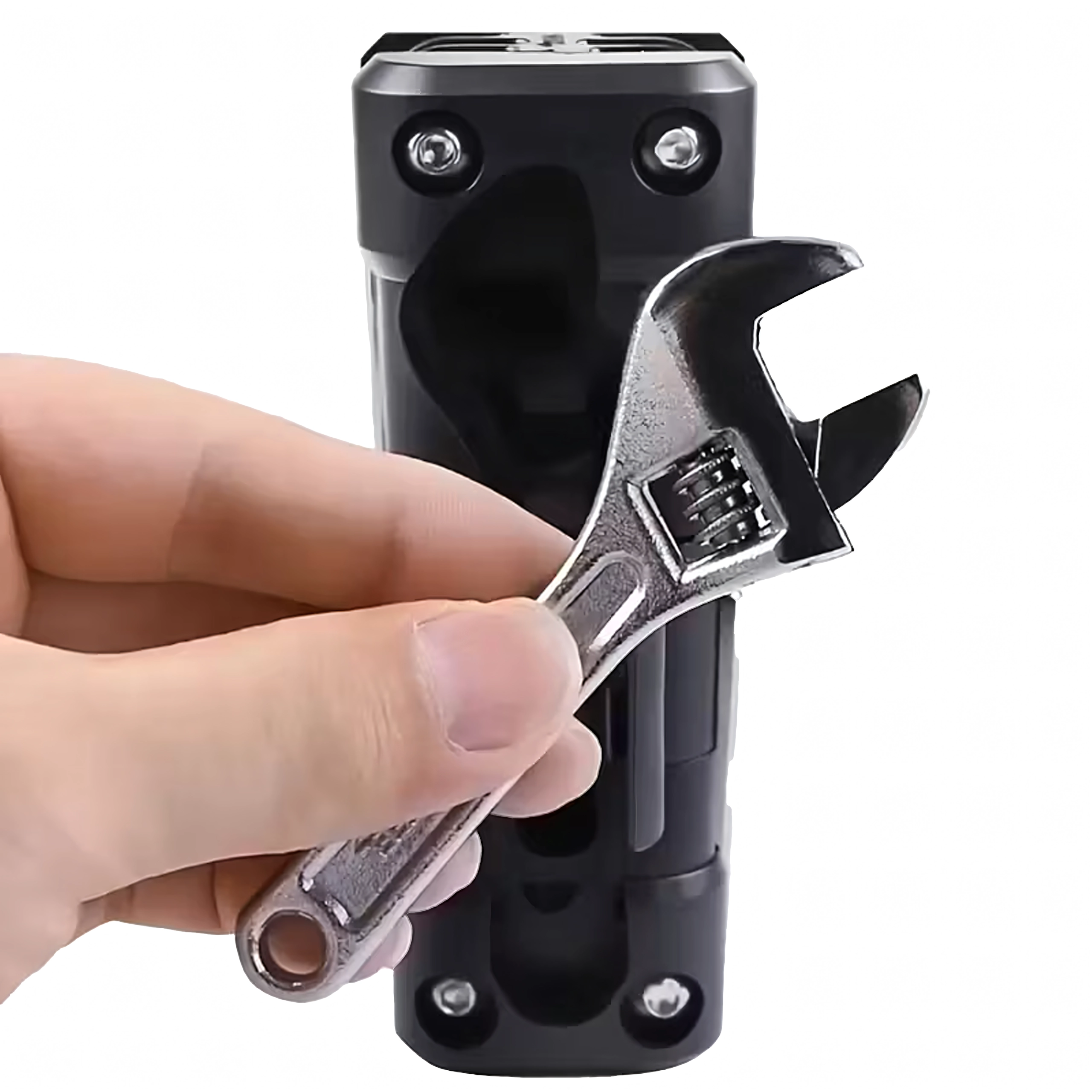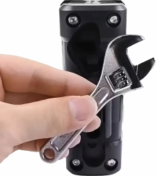 Integrovaný nastavitelný klíč pomůže s různými rozměry matic a šroubů bez nutnosti dalších nástrojů.