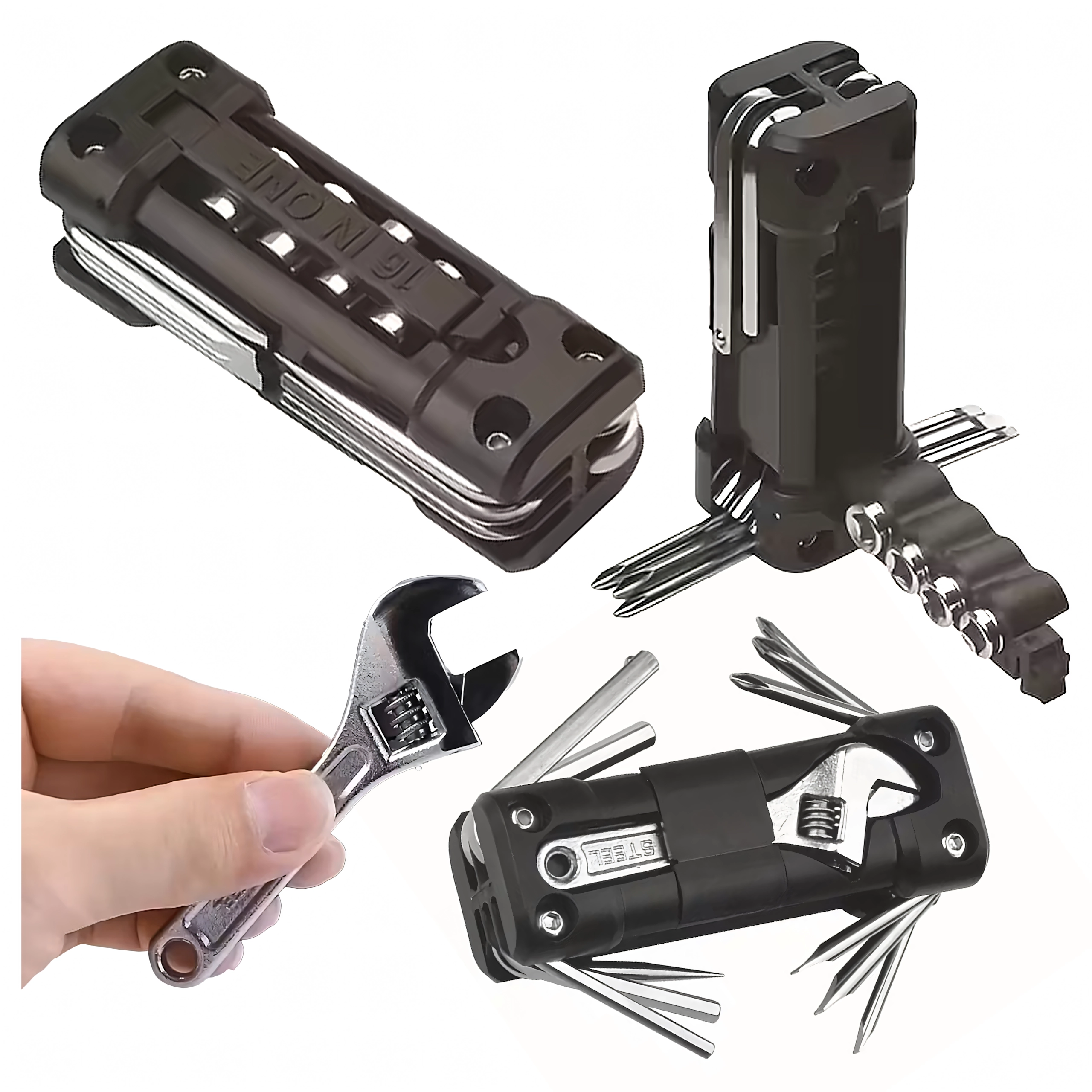 Praktický multitool 13v1 nahradí celou bednu nářadí. Je kompaktní, skládací a ideální pro kolo, dílenské opravy, auto i kempování – zkrátka vždy po ruce, když potřebujete rychlou opravu.