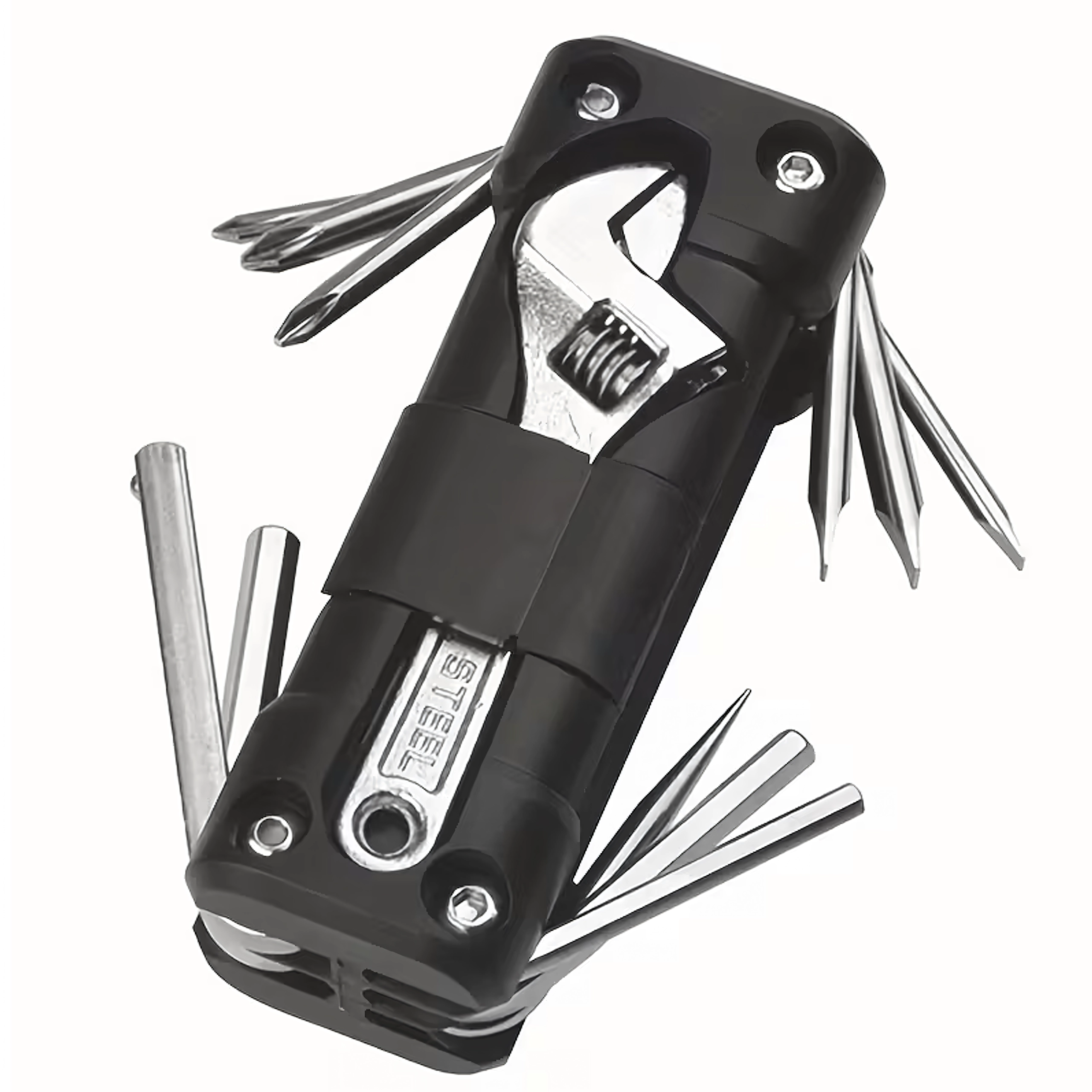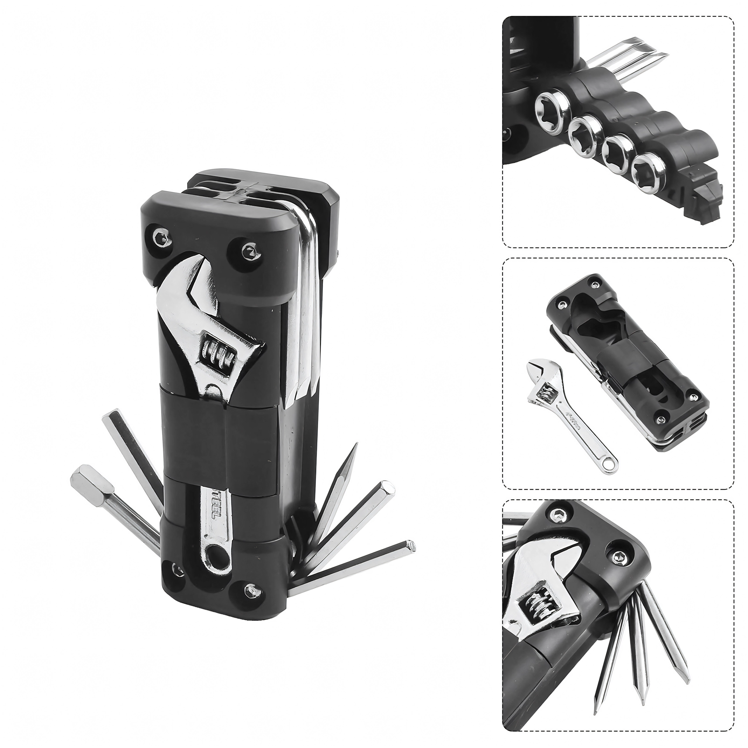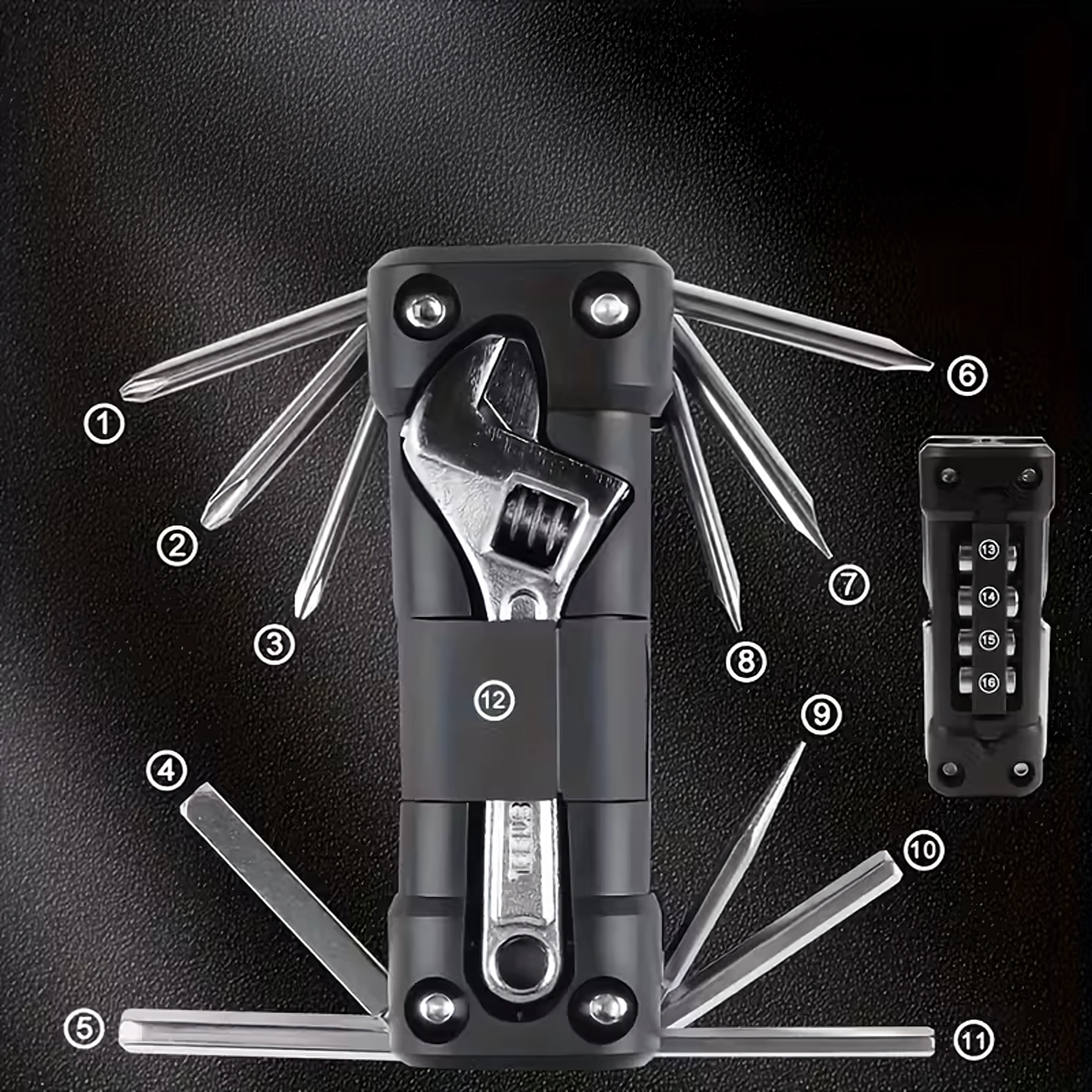 Univerzální multitool 13v1 nabízí vše potřebné pro utažení šroubů a rychlé seřízení na cestách i doma. Robustní kovové nástroje a ergonomické tělo zajistí jistý úchop a dlouhou životnost. Díky skládací konstrukci se pohodlně vejde do kapsy, podsedlové brašny nebo přihrádky v autě.