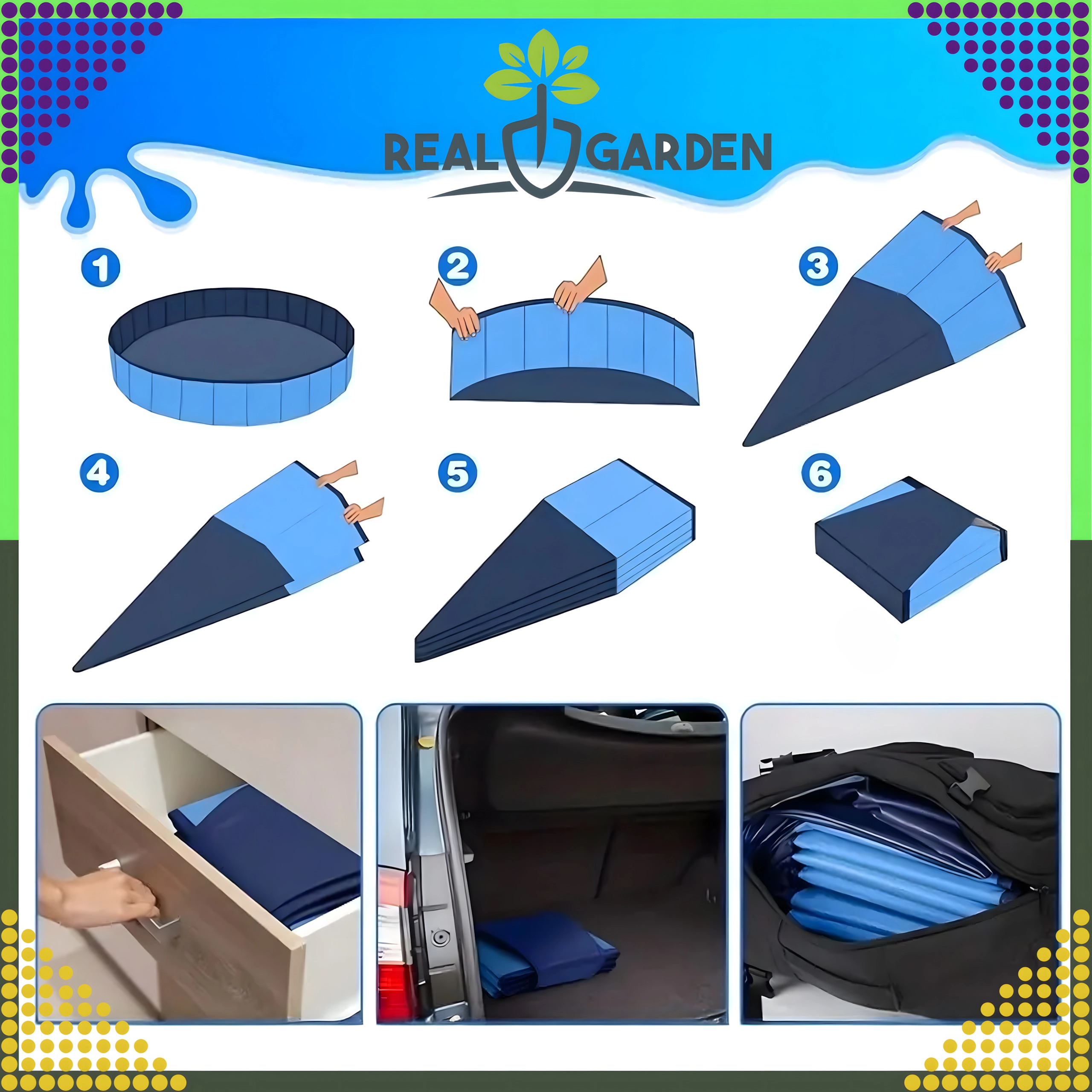 Praktická konstrukce umožňuje bazének během chvilky rozložit i složit, vzít s sebou na dovolenou nebo přesunout na jiné místo na zahradě. Integrovaný vypouštěcí ventil zajistí rychlé vypuštění vody bez námahy.