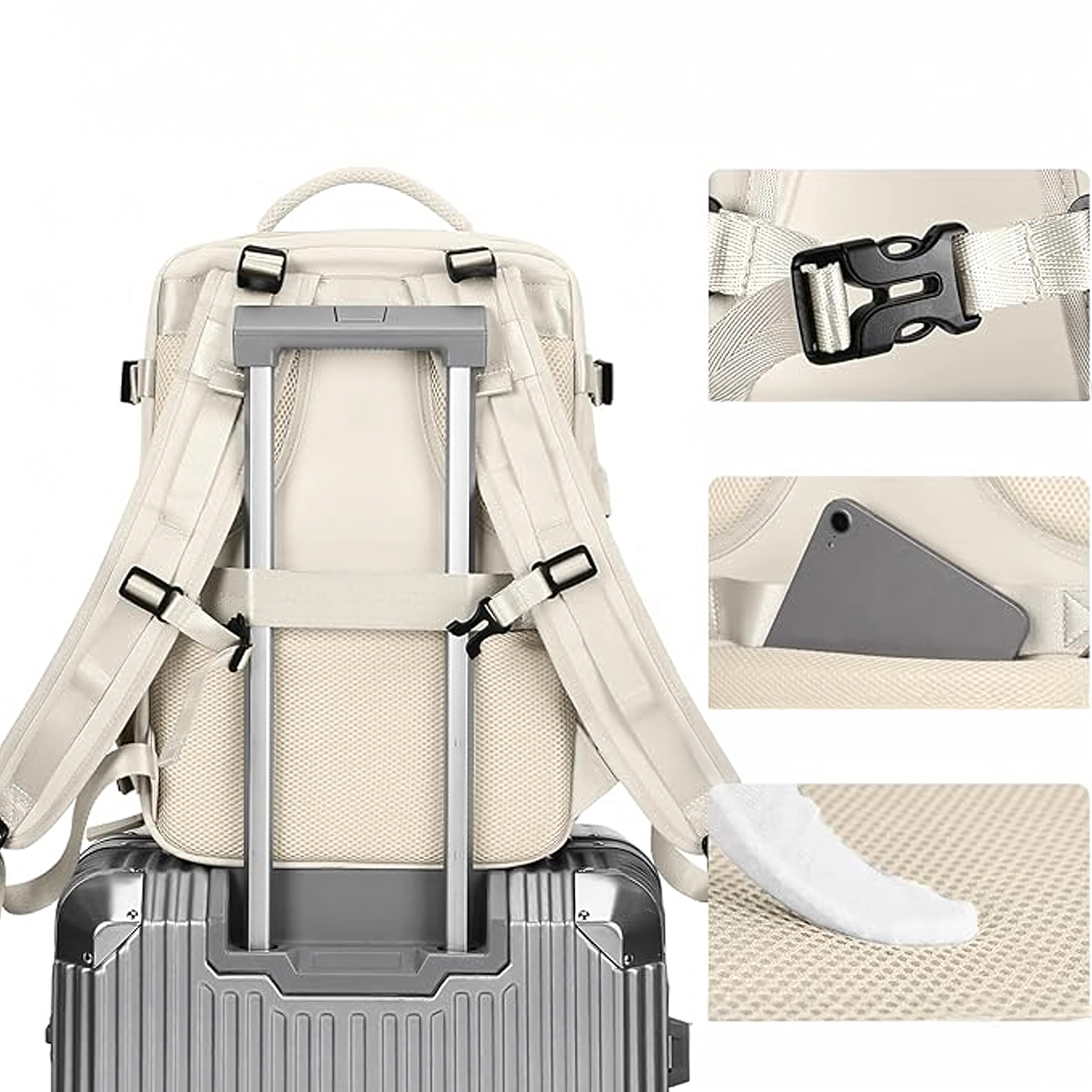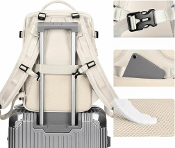 Integrovaný popruh umožní batoh nasadit na madlo kufru. Polstrovaná záda z prodyšné síťoviny a nastavitelné ramenní popruhy zvyšují komfort.