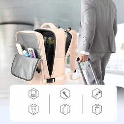 Tento univerzální kabinový batoh kombinuje pohodlí, funkčnost a moderní vzhled. Díky rozměrům 46 × 30 × 20 cm je vhodný pro většinu nízkonákladových aerolinek a bez problémů poslouží jako příruční zavazadlo. Odolný voděodolný materiál chrání vaše věci v každém počasí, zatímco promyšlené vnitřní členění udrží vše přehledně uspořádané.