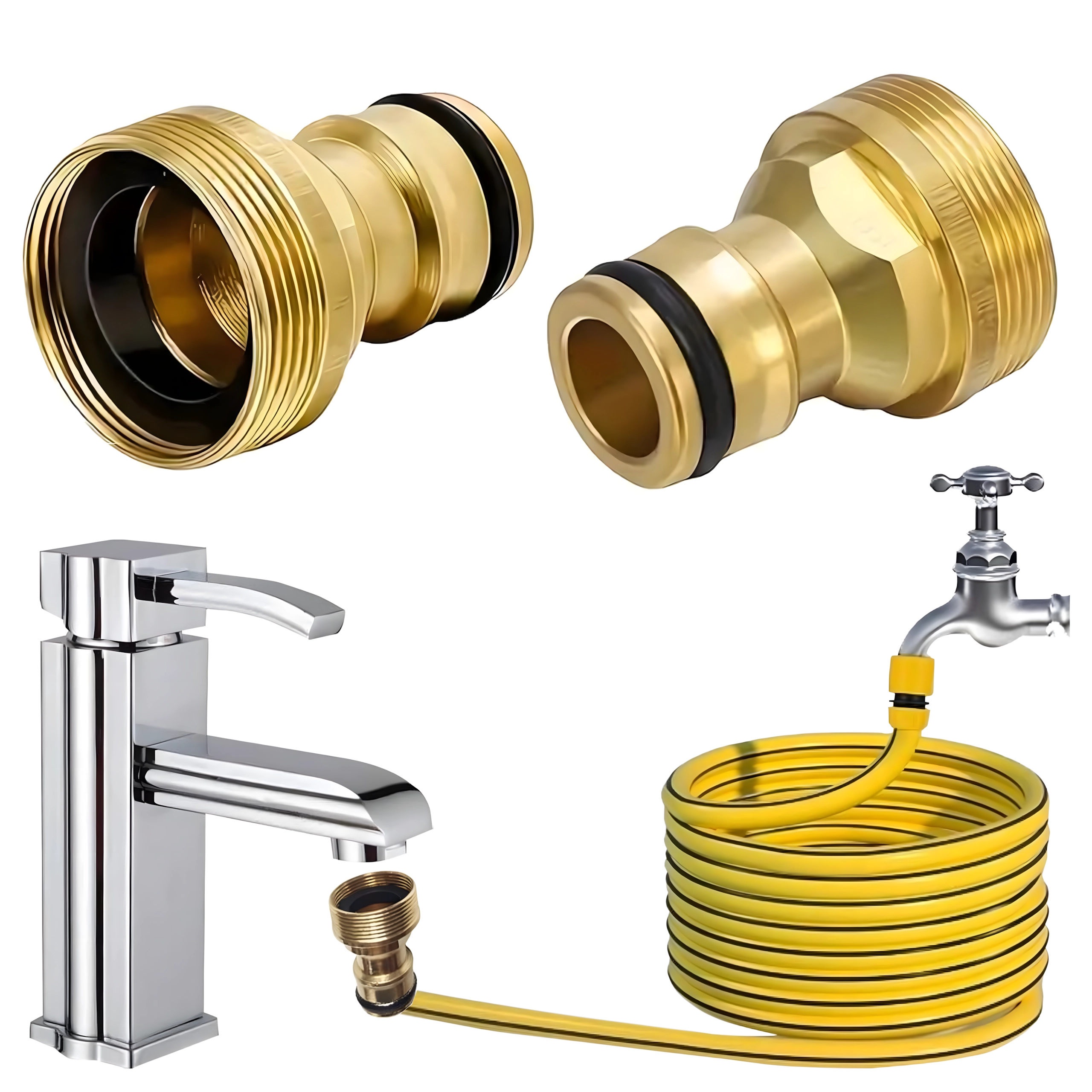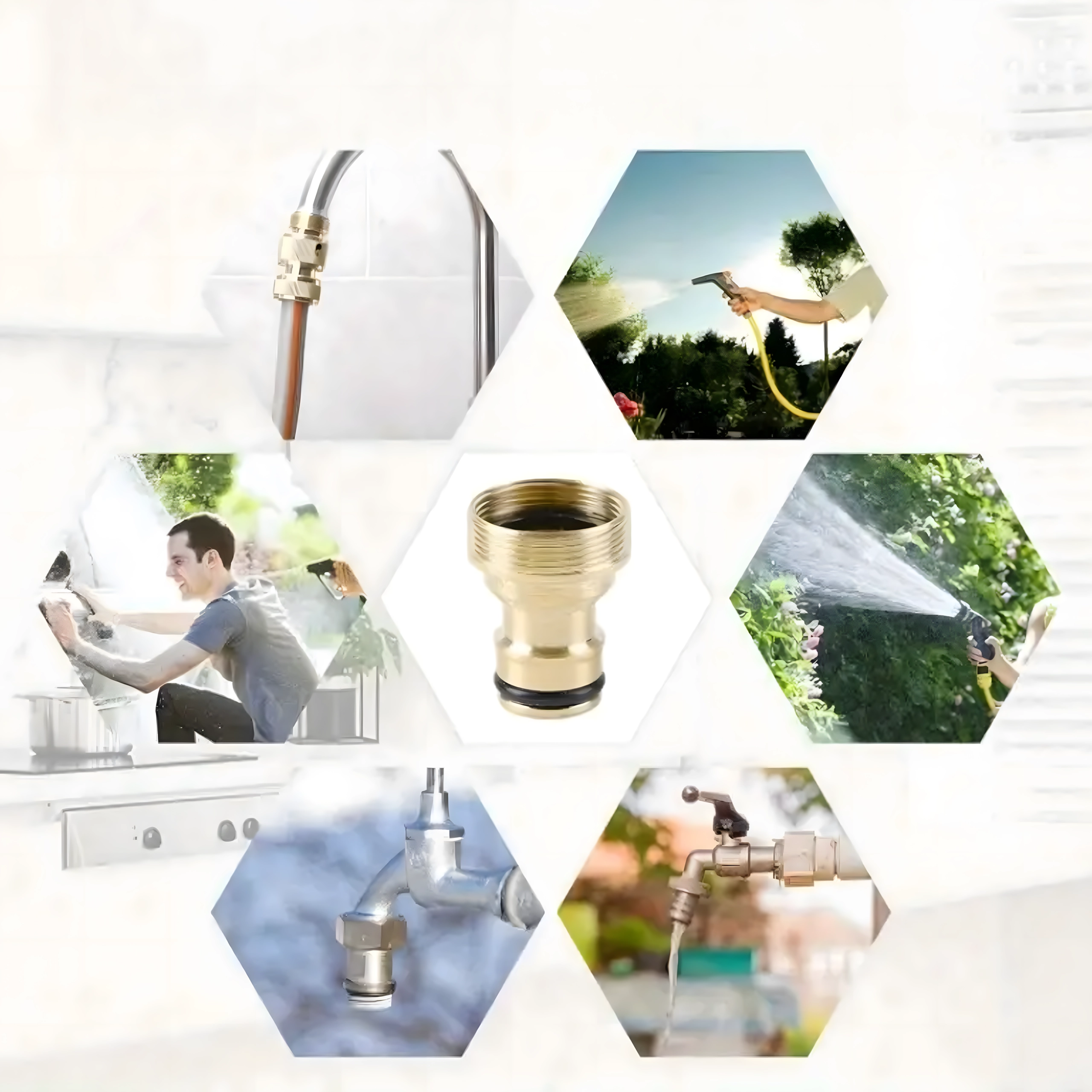 Univerzální mosazný adaptér G3/4 umožní rychlé připojení zahradní hadice ke kohoutku bez nářadí. Díky odolné mosazné konstrukci a výměnné těsnicí O‑kroužku zajistí spolehlivé, těsné a bezkapkové spojení pro zavlažování, mytí auta i úklid kolem domu.