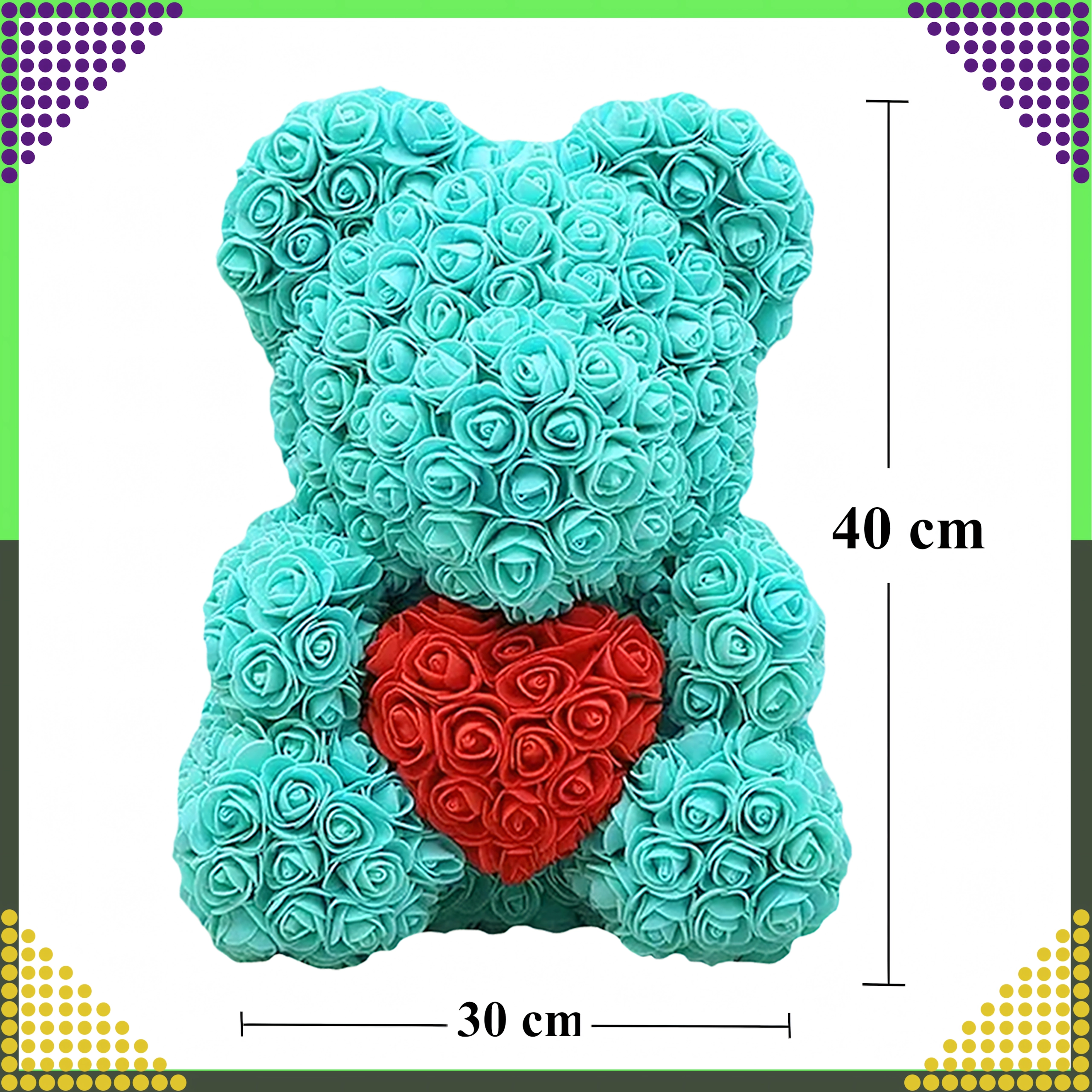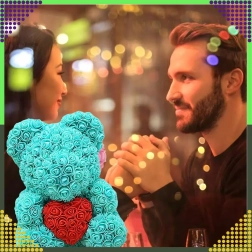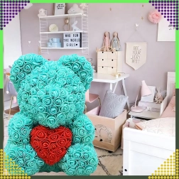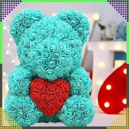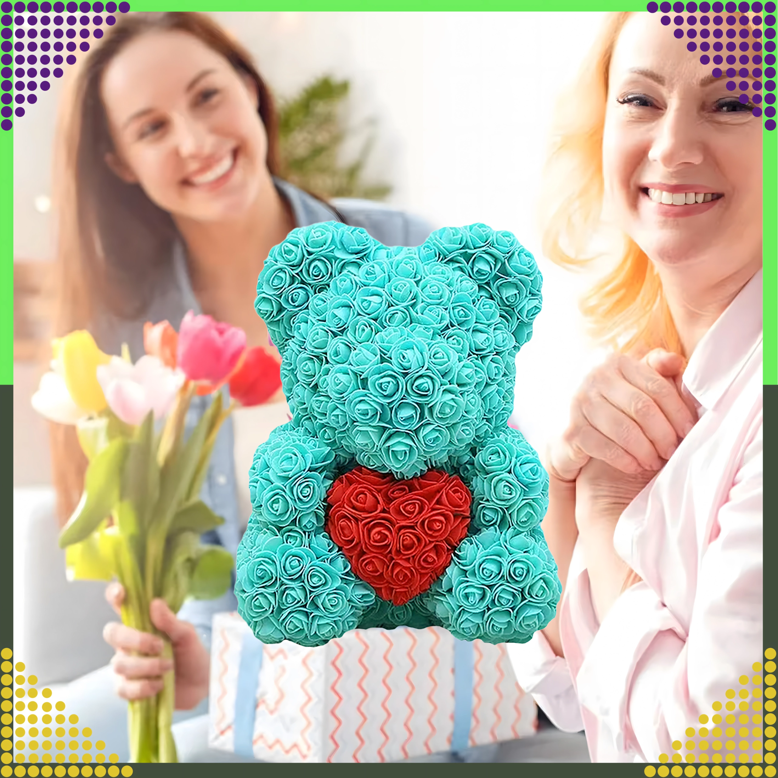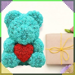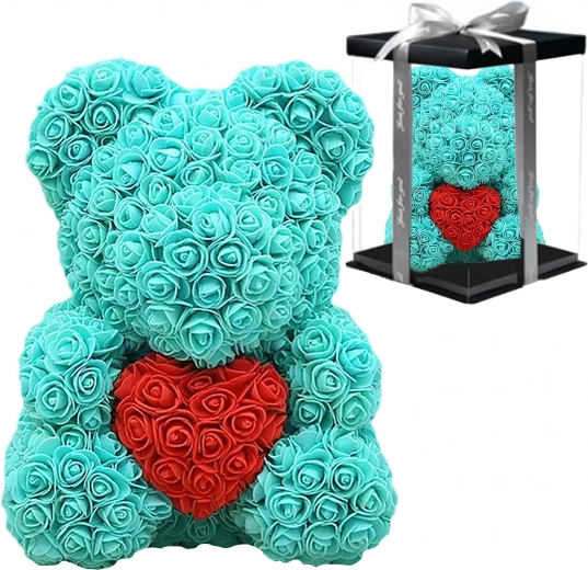Elegantní medvídek z růží o výšce 40 cm je nezapomenutelný romantický dárek pro partnerku, maminku či babičku. Je vyroben z jemných pěnových růží, které nikdy neuvadnou, takže poslouží jako trvalá dekorace i symbol lásky na Valentýna a další výjimečné příležitosti.