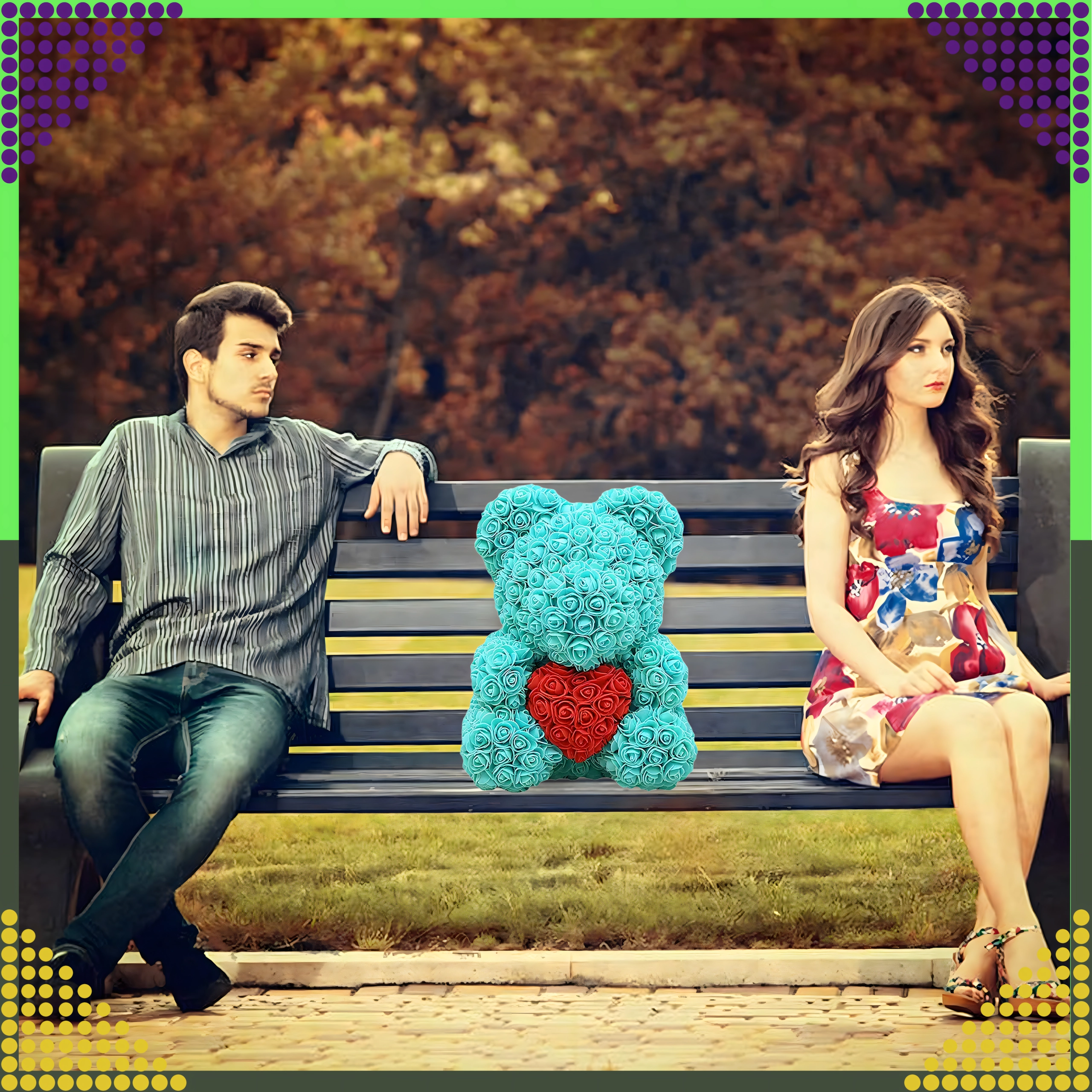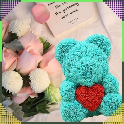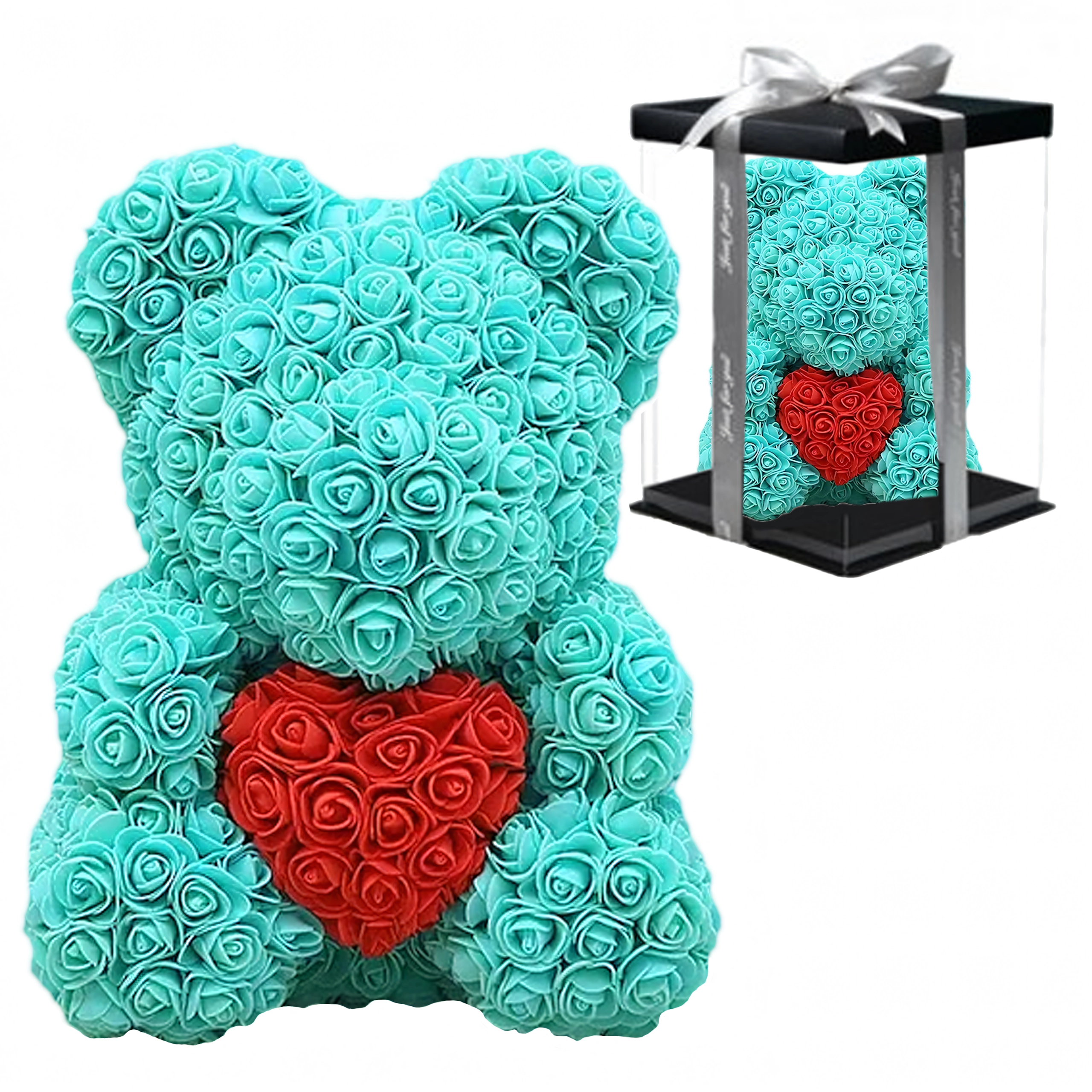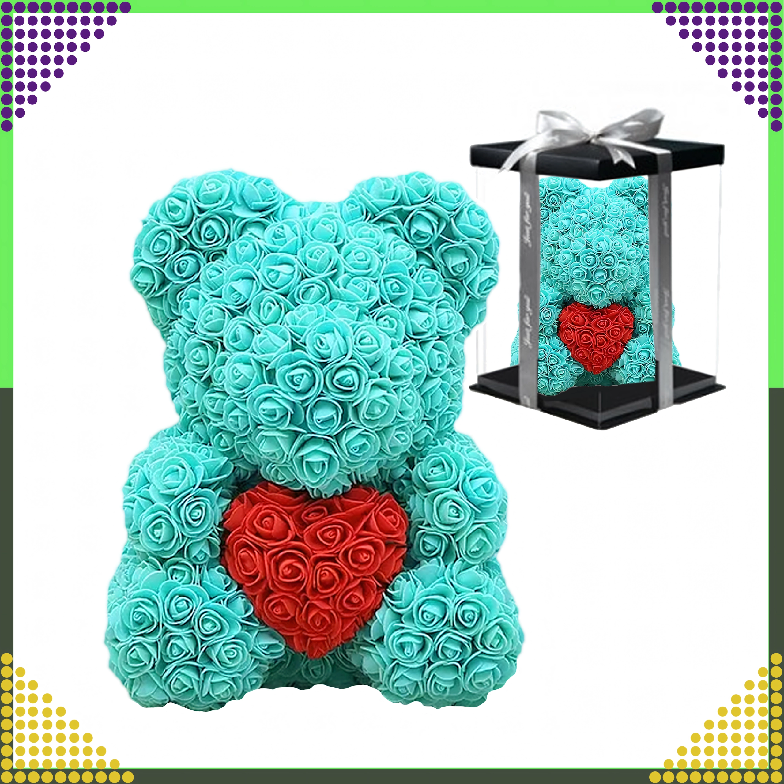 Elegantní medvídek z růží o výšce 40 cm je nezapomenutelný romantický dárek pro partnerku, maminku či babičku. Je vyroben z jemných pěnových růží, které nikdy neuvadnou, takže poslouží jako trvalá dekorace i symbol lásky na Valentýna a další výjimečné příležitosti.