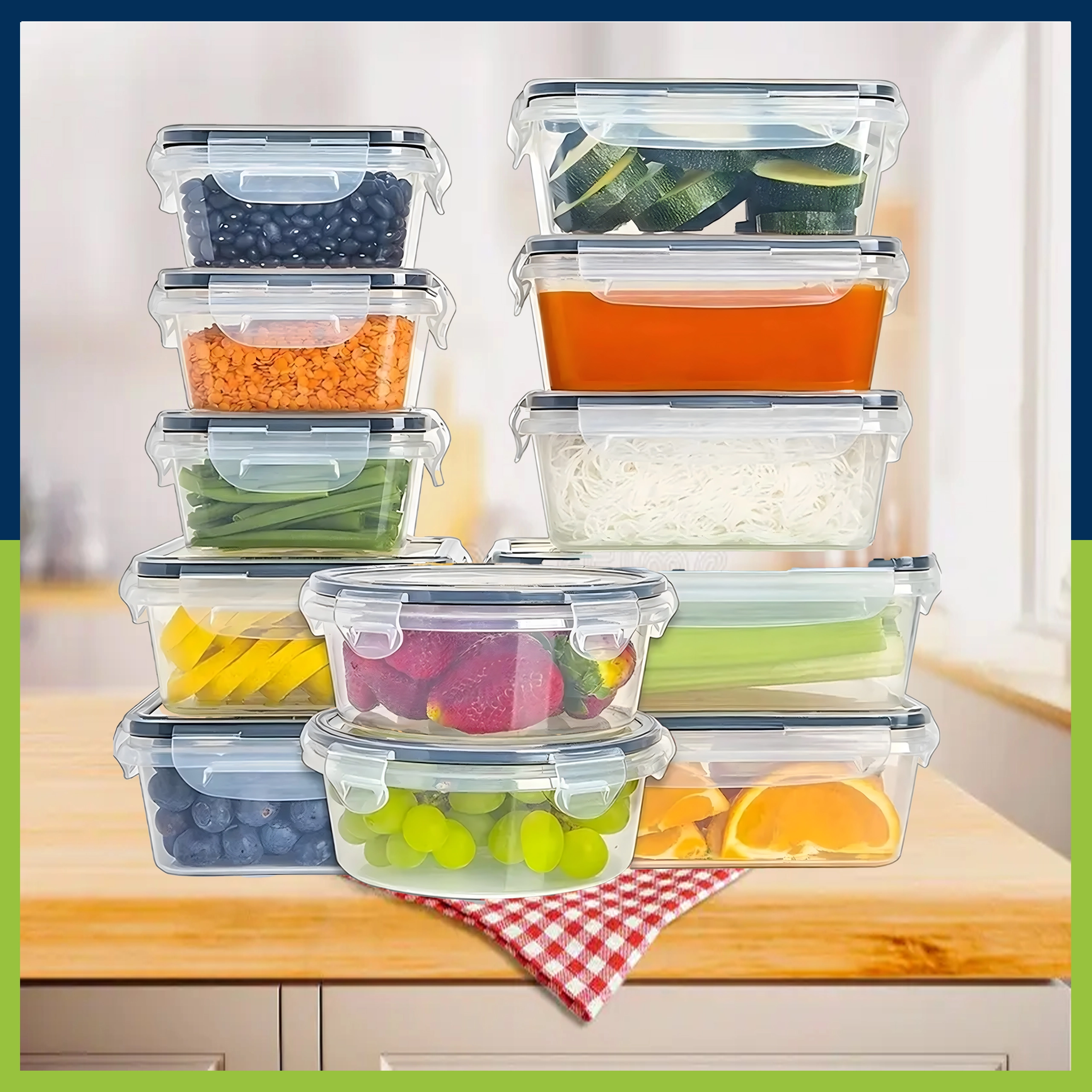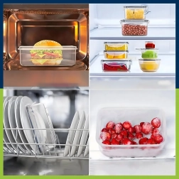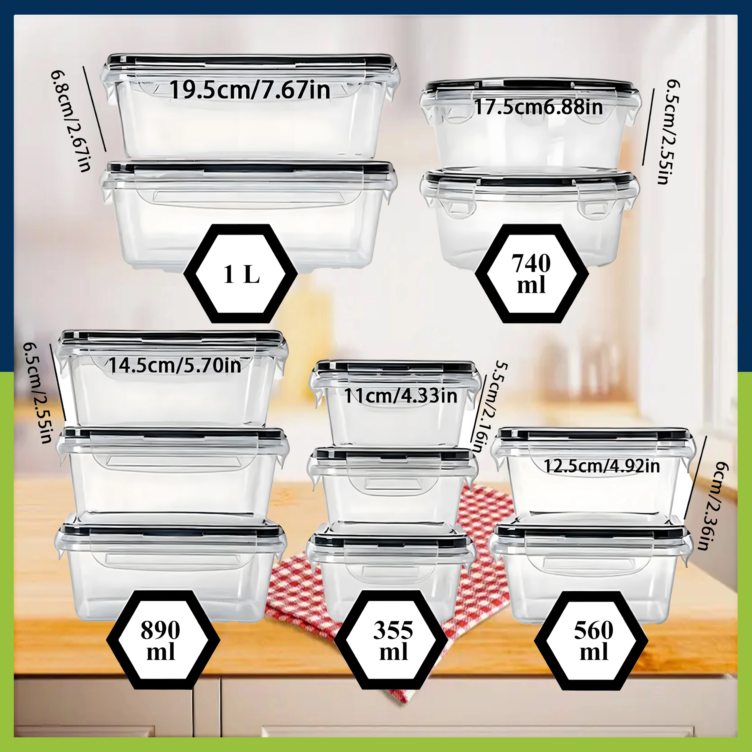 Tato všestranná sada obsahuje malé i větší nádoby pro svačiny, ovoce, zeleninu, zbytky jídel i přípravu meal-prepu. Průhledné stěny usnadňují rychlou identifikaci obsahu a pevná víka se západkami zajišťují spolehlivou těsnost proti únikům tekutin a zápachů.