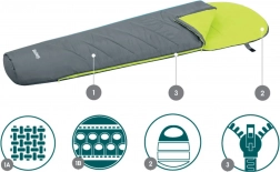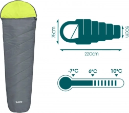 Duté vlákno Hollow Fiber 170 g/m² efektivně zadržuje teplo a zajišťuje komfortní teplotu v rozmezí +6 až +10 °C s extrémní hranicí až -7 °C. Díky hmotnosti pouhých 0,8 kg a kompaktním rozměrům po sbalení se skvěle hodí na trekking, stanování i festivaly. V balení nechybí praktický transportní obal.
