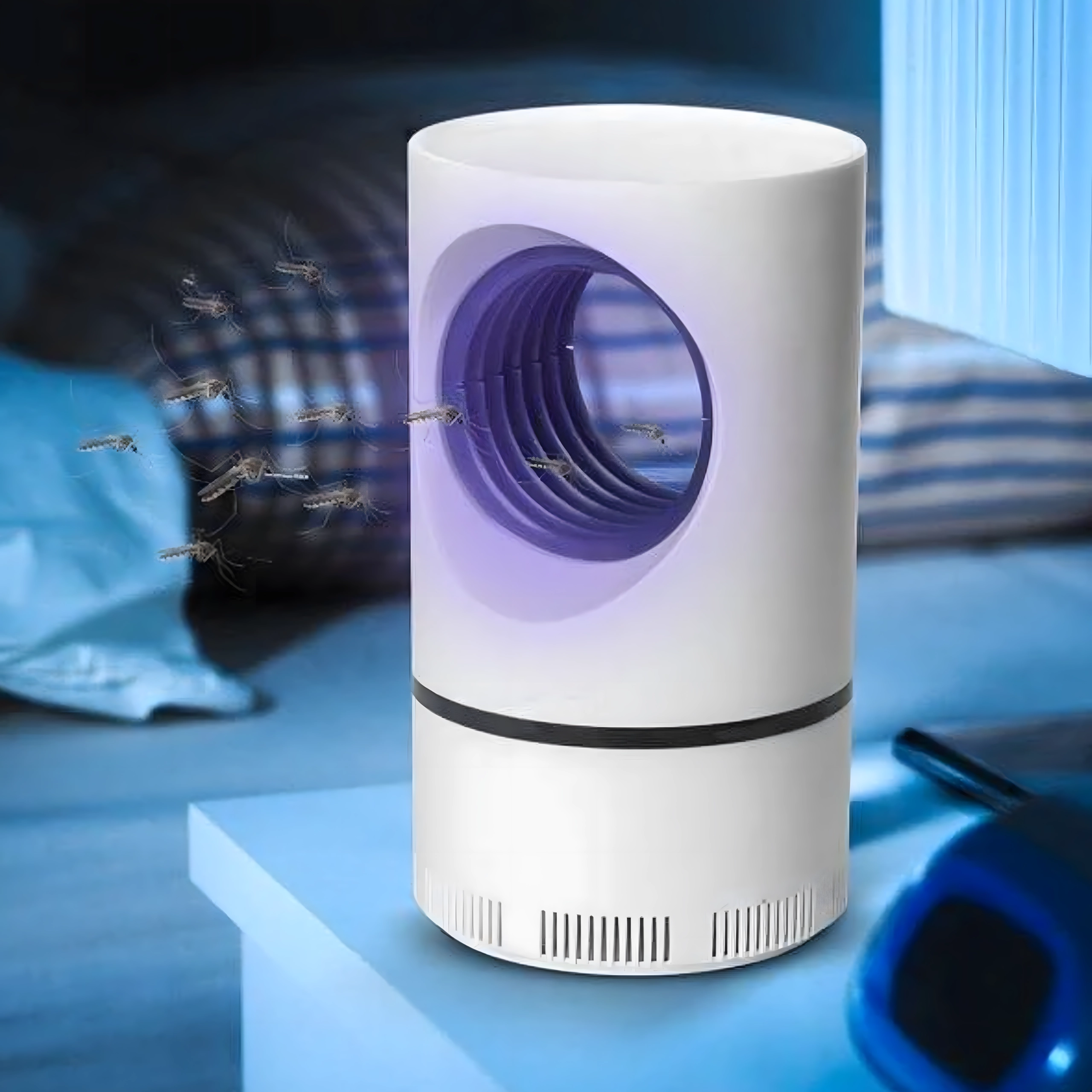 Tichý a bezpečný UV lapač hmyzu pro domácnost i venkovní použití. Bez chemie a zápachu, láká komáry a mouchy na UV světlo a ventilátor je vtáhne do sběrné nádoby. Díky USB napájení jej použijete v ložnici, kuchyni, na balkoně, v zahradě i ve stanu. Bezpečné pro děti a domácí mazlíčky.