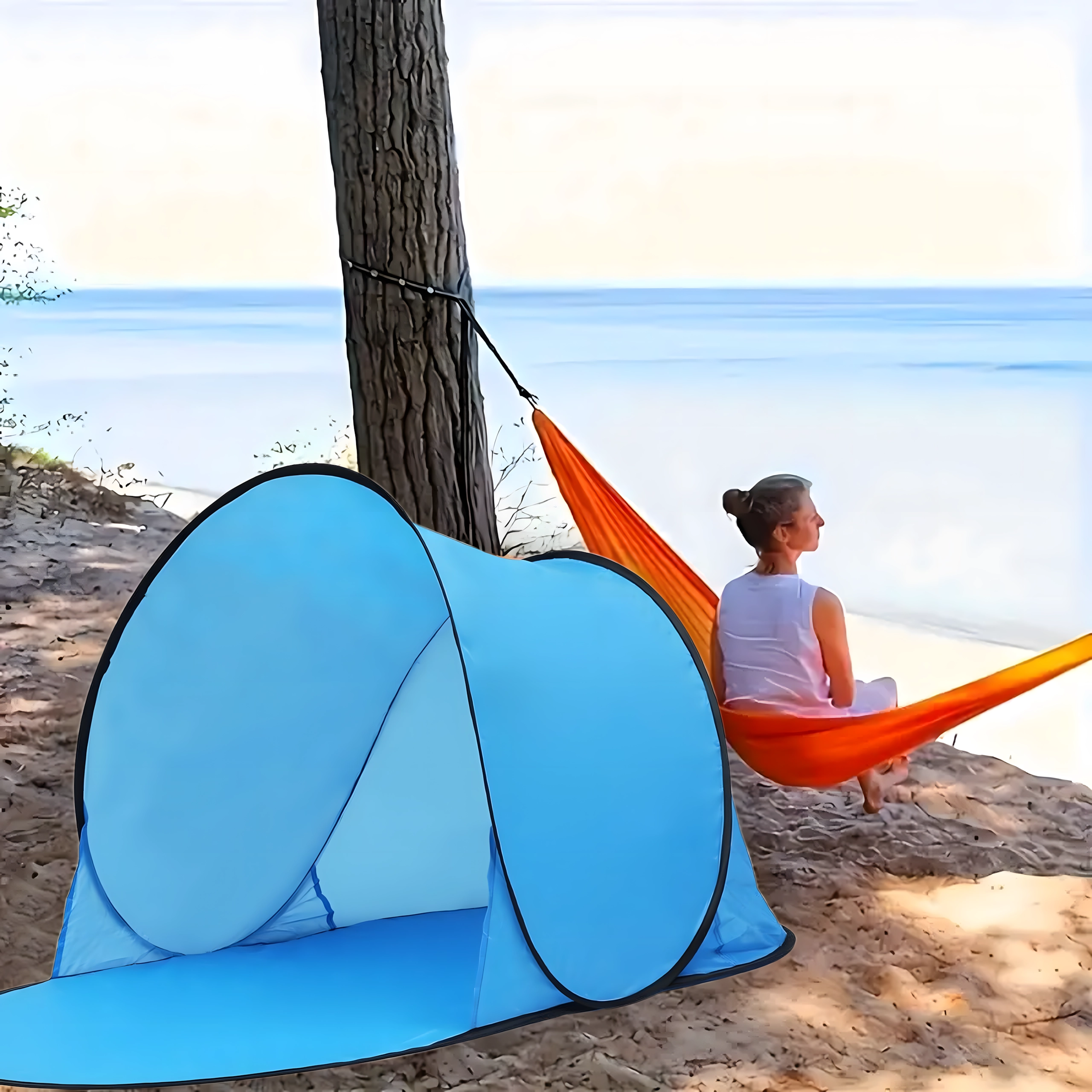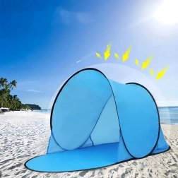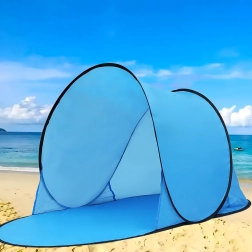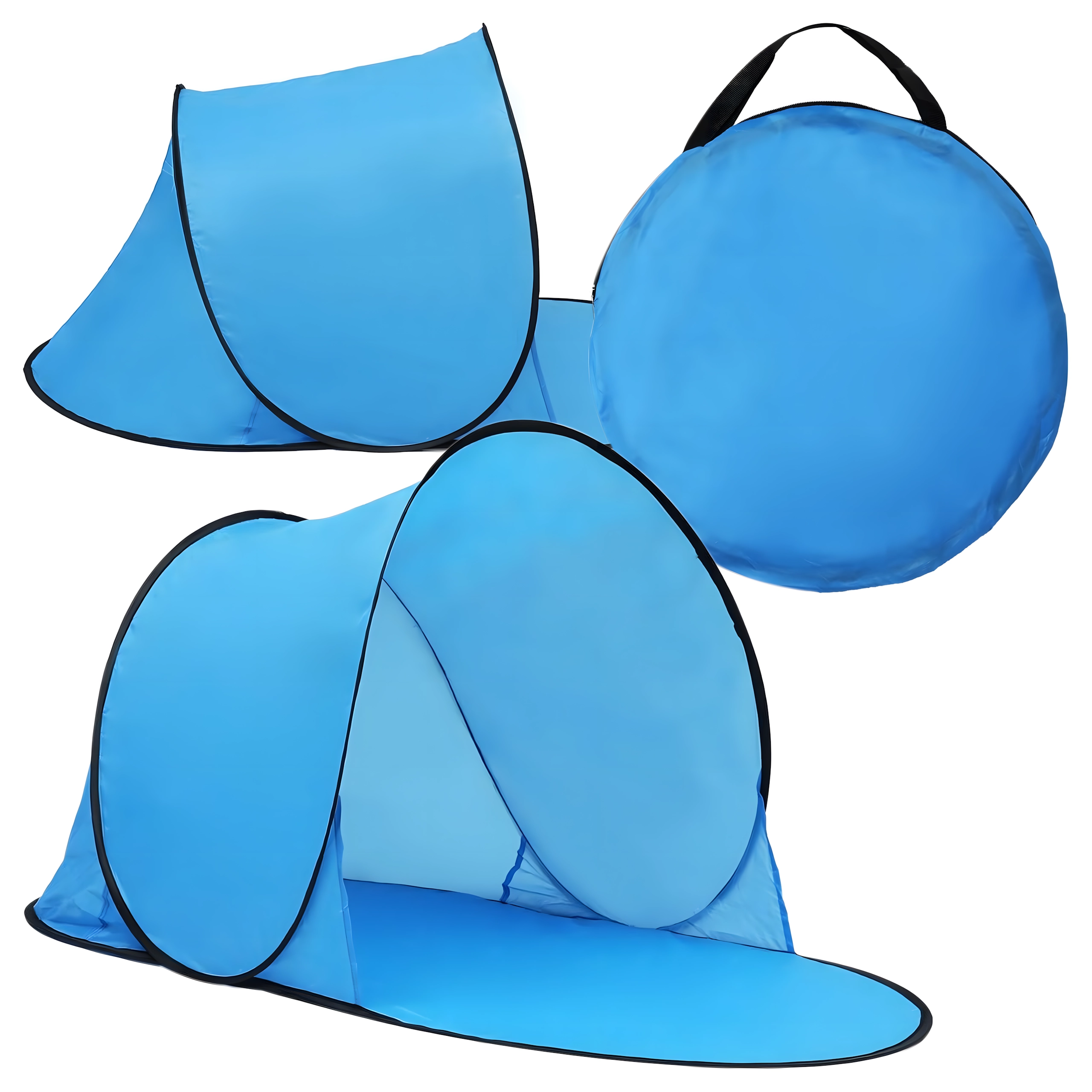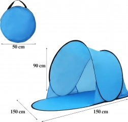 Praktický plážový pop-up stan, který se samorozkládá během pár sekund. Poskytuje ochranu před sluncem (UV), větrem i lehkým deštěm. Je lehký, kompaktní a ideální na pláž, zahradu i piknik. Součástí je přepravní obal a kolíky pro ukotvení.
