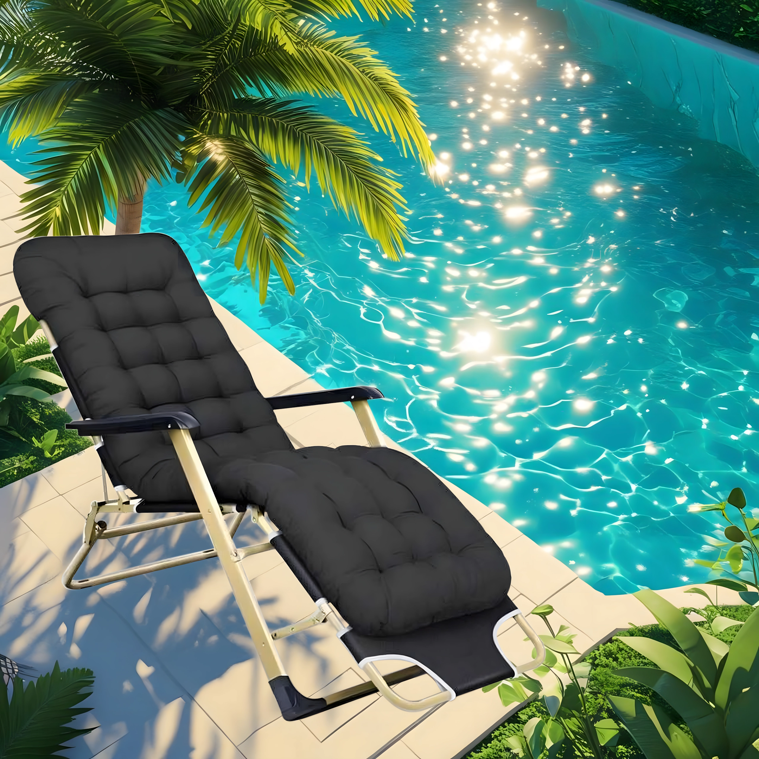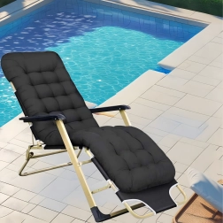 Užijte si relax kdekoli se skládacím zahradním lehátkem s tlustou polstrovanou poduškou. Díky gravitačnímu polohování, odolné kovové konstrukci a snadnému skládání je ideální na zahradu, balkon, terasu i pláž.