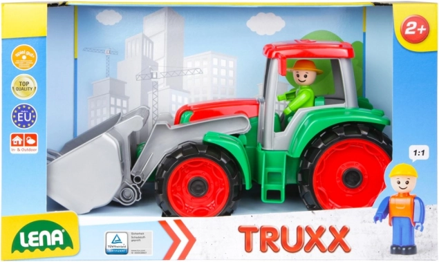 Díky kompaktní délce 35 cm se traktor dobře drží a snadno ovládá. Hodí se pro hraní v interiéru i venku na pískovišti a skvěle doplní další vozidla ze série TRUXX. Materiály splňují evropské normy, takže si děti mohou hrát bezpečně a rodiče v klidu.