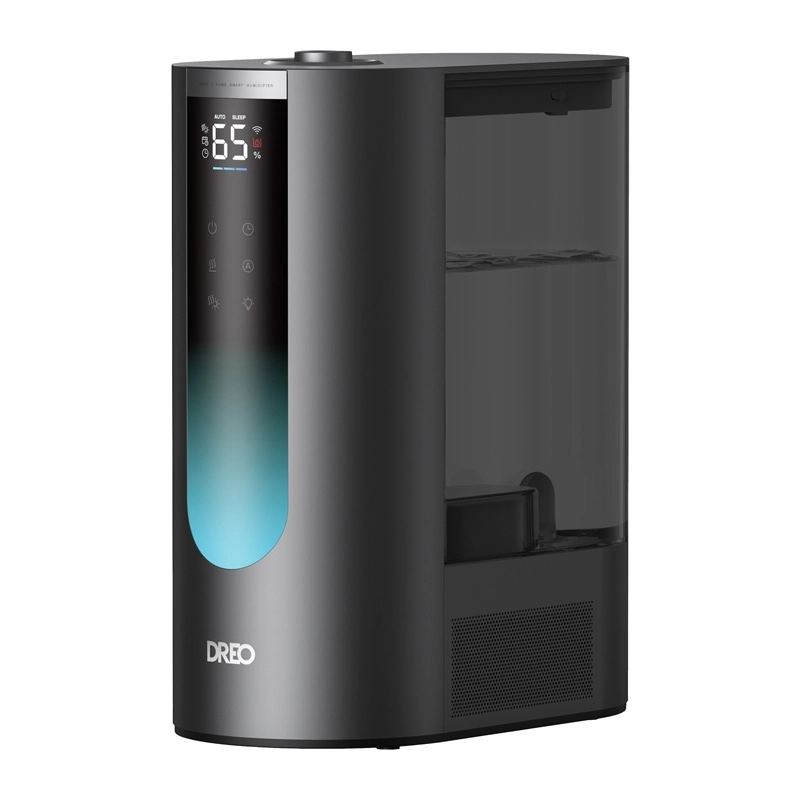 Ovládání je maximálně pohodlné – přes aplikaci Dreo nastavíte plány, sledujete historii vlhkosti až 30 dní a získáte upomínky na čištění. Přístroj podporuje hlasové ovládání přes Google Home a Amazon Alexa. Praktické horní plnění usnadňuje doplňování vody, dvojitá kazeta pro esenciální oleje rychle provoní interiér a kompatibilita s demineralizačními kazetami omezuje tvorbu vodního kamene.