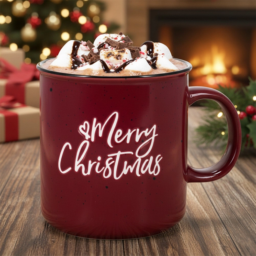 Reliéfní nápis, bordová glazura a lesklý povrch dodají vánoční atmosféru každému stolování. Skvělý tip na dárek.