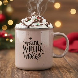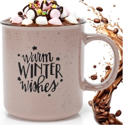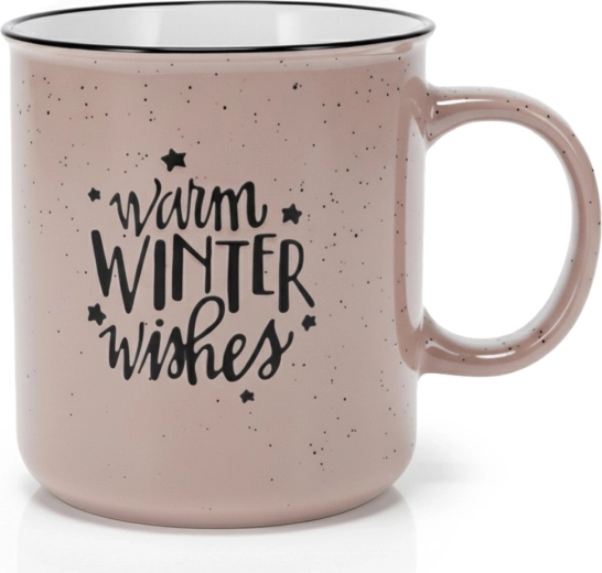 Vychutnejte si zimní pohodu s prostorným hrnkem z kvalitní kameniny v módní béžové se skvrnitým efektem a kontrastním bílým vnitřkem. Nadčasový tvar, velké ucho a sezónní nápis warm winter wishes dodají vašim chvilkám u horkého nápoje tu správnou atmosféru.