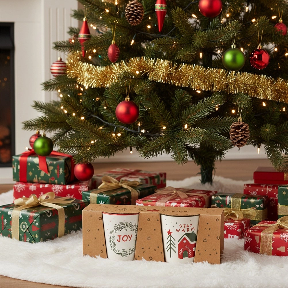 Decentní sezónní motivy a kontrastní červené a zelené detaily dodají každému doušku tu pravou vánoční náladu.
