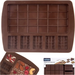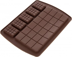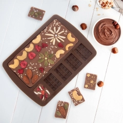 Elastický, nepřilnavý silikon umožňuje bezproblémové vyjmutí hotové čokolády bez praskání a bez nutnosti vymazávání.