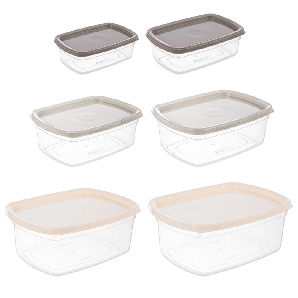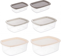 Praktická sada šesti průhledných dóz s víčky v různých velikostech pro přehledné skladování potravin doma i na cestách. Díky dobře těsnícím víčkům udrží potraviny déle čerstvé, jsou vhodné do lednice i mrazáku a můžete je mýt v myčce. Dózy se dají vnořit do sebe, takže šetří místo ve skříňce. 6 velikostí, těsnící víčka, stohovatelný a vnořitelný design, bezpečné pro potraviny a odolnost od -25 °C do +95 °C.