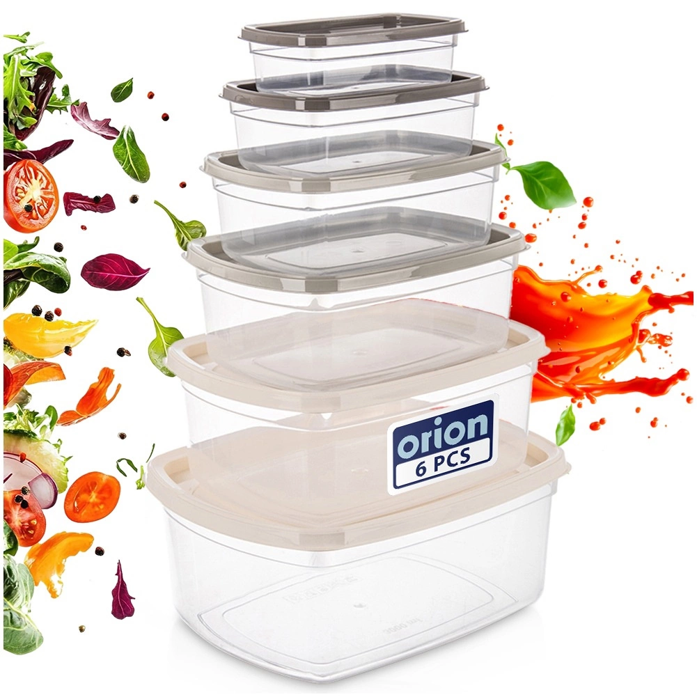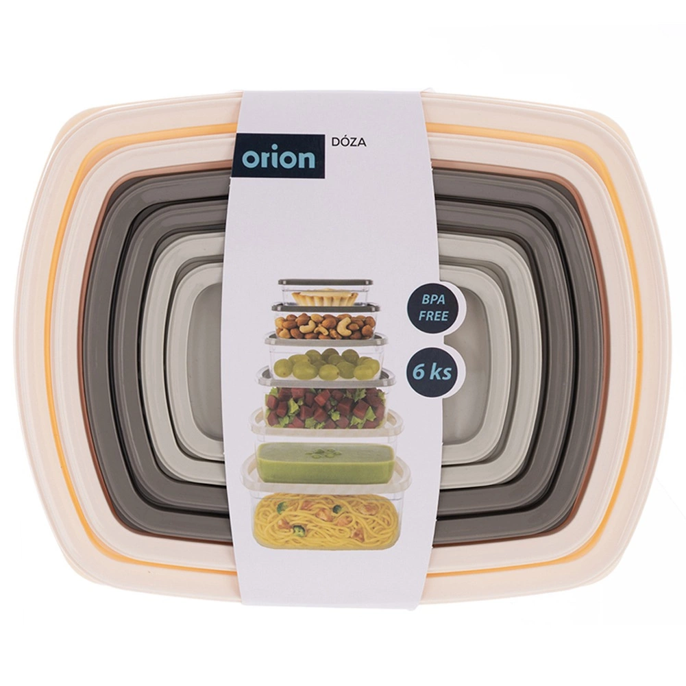 Udělejte pořádek v kuchyni i lednici. Sada ORION obsahuje 6 průhledných dóz s víčky ve třech neutrálních barvách pro univerzální použití – od těstovin a sypkých potravin až po saláty, ovoce či zbytky jídel. Průhledné stěny umožňují rychlou kontrolu obsahu bez otevírání a přesně padnoucí víčka zajišťují spolehlivé těsnění.