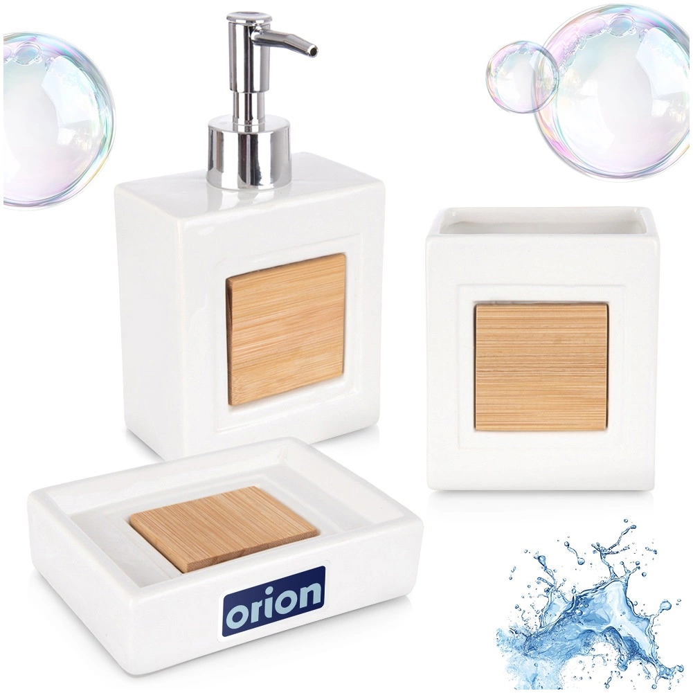 Součástí sady je dávkovač na tekuté mýdlo s přesným dávkováním, kelímek na kartáčky nebo kosmetické doplňky a mýdlenka pro hygienické odkládání tuhé kostky mýdla. Ideální pro koupelnu i toaletu – pomáhá udržet pořádek a elegantní vzhled.