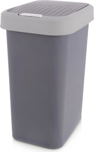 Odpadkový koš o objemu 25 l je ideální volbou pro domácnosti i kanceláře. Pevné plastové provedení ve dvou odstínech šedé působí moderně a snadno se čistí. Uchylné víko efektivně omezuje šíření pachů a široký otvor usnadňuje vložení odpadu i výměnu sáčků.