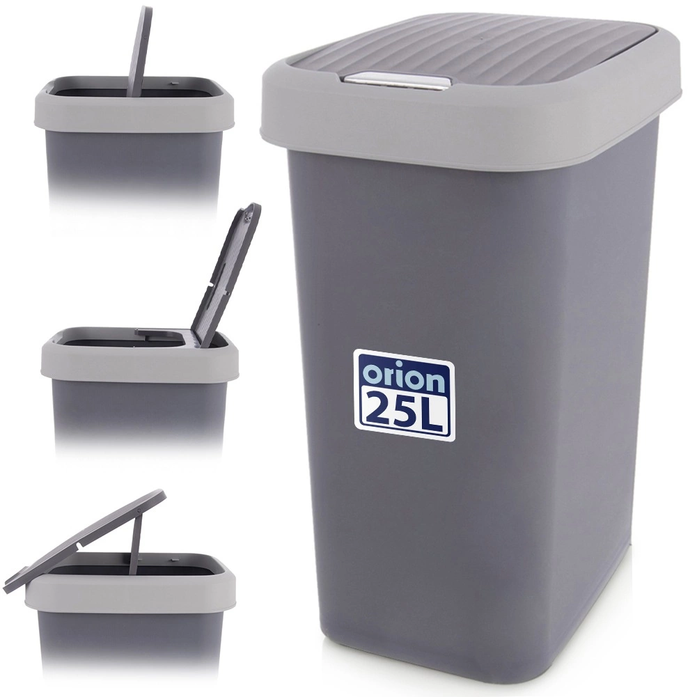 Praktický plastový odpadkový koš o objemu 25 l v elegantní šedé barvě s uchylným víkem pro snadné a hygienické vyhazování odpadků. Díky kompaktním rozměrům se hodí do kuchyně, koupelny i kanceláře. Odolné a lehké provedení, dvousměrné otevírání víka a možnost aretace v otevřené poloze zajišťují pohodlné každodenní používání.