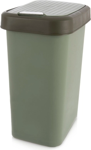Odolný a lehký koš z kvalitního plastu v zeleném odstínu nabídne čistý vzhled a snadnou údržbu. Sklopné víko s pohyblivou klapkou umožňuje vhazování odpadu z různých stran a současně omezuje šíření nepříjemných pachů. Díky štíhlému tvaru se koš dobře vejde i do menších prostor.