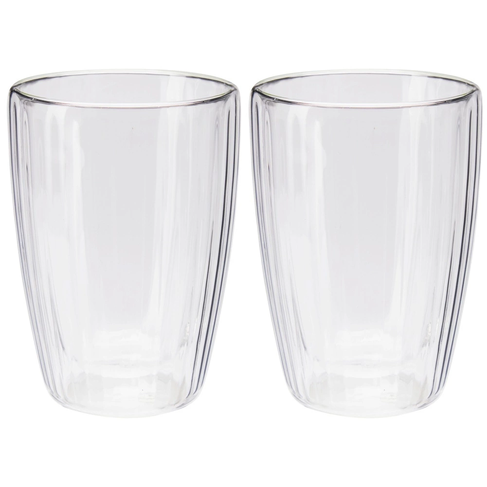 Elegantní sada dvou termo sklenic s dvojitou stěnou o objemu 350 ml pro stylové servírování kávy a čaje. Díky borosilikátovému sklu udržují nápoje déle teplé i studené a přitom zůstávají na dotek pohodlné. Moderní design, proužkovaná struktura pro jistější úchop, nízká hmotnost a vysoká odolnost vůči teplotám dělají z těchto sklenic skvělou volbu pro každý den.