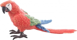 Věrné zpracování peří, jasné červené zbarvení s modro‑zelenými akcenty a charakteristický tvar zobáku pro autentický vzhled ara.