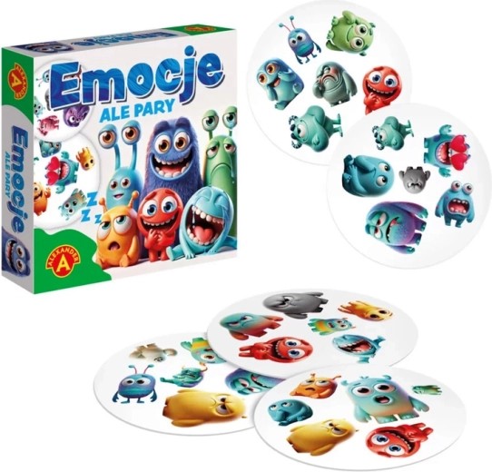 Hra Ale Pary: Emoce kombinuje dynamickou zábavu s edukací. Na každých dvou kartách je vždy jeden společný symbol emoce – vaším úkolem je najít ho co nejrychleji. Ikony se liší velikostí a natočením, což zvyšuje náročnost i napětí v každém kole.