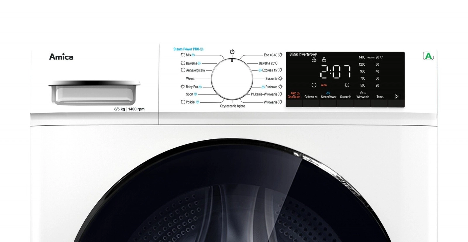 - 8 kg praní / 5 kg sušení – ideální kapacita pro rodinu.