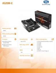 SAPPHIRE A520M-E je mATX základní deska postavená na čipsetu AMD A520, která přináší stabilní platformu pro procesory AMD AM4. Nabízí vyváženou kombinaci výkonu, funkcí a spolehlivosti pro každodenní práci i zábavu.