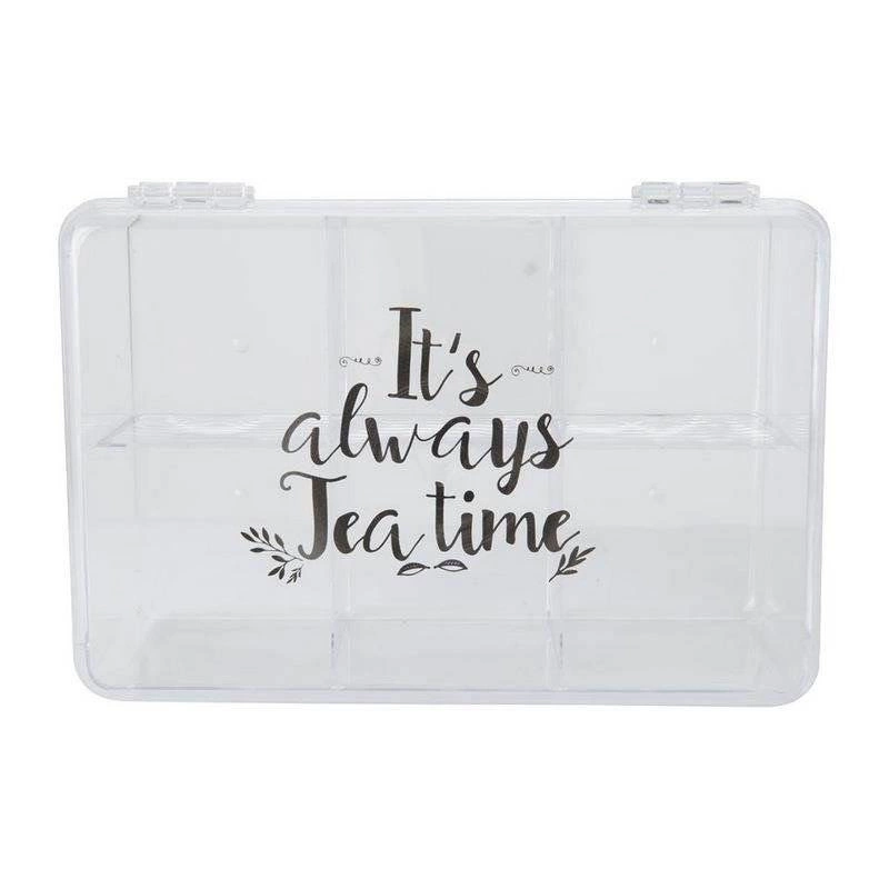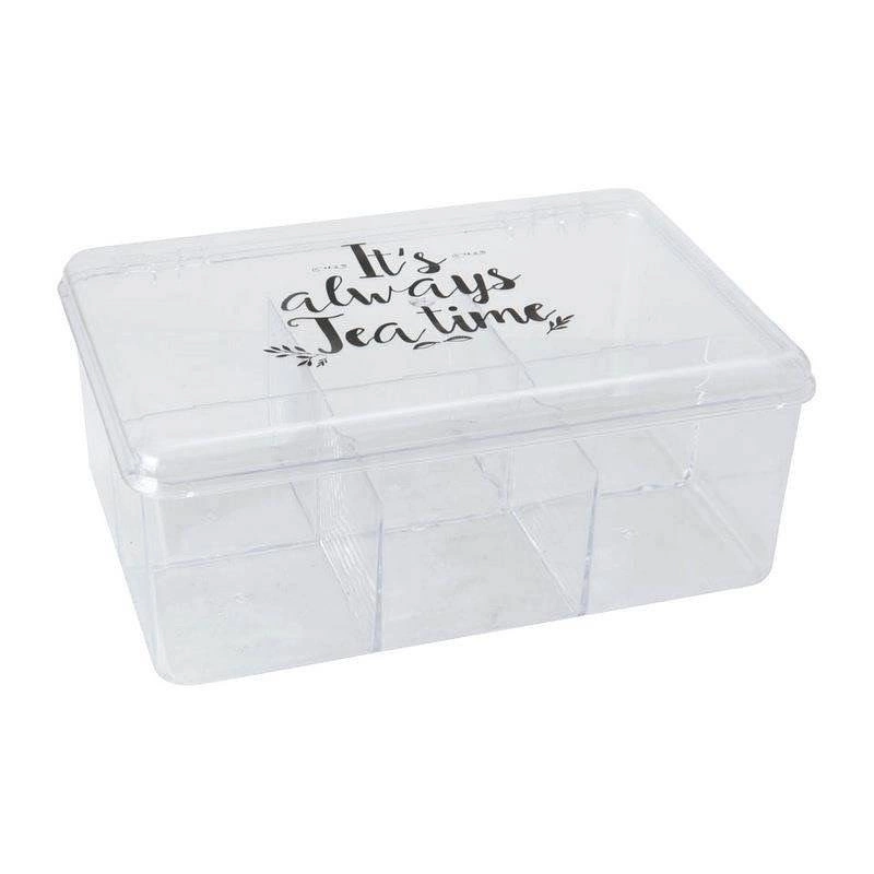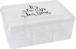 Průhledné provedení zajišťuje okamžitý přehled o obsahu, takže vždy víte, co doplnit. Box je snadno čistitelný, vhodný do domácnosti, kanceláře i na cesty – vezměte si své oblíbené čaje na dovolenou, kemping nebo piknik.
