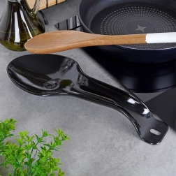 Udržte kuchyňskou linku bez nepořádku díky praktické odkládací podložce na kuchyňské náčiní v elegantní černé barvě. Má rozměry 29 × 10,5 × 4 cm, je univerzální pro vařečky, naběračky i obracečky, odolná vůči teplu a snadno omyvatelná, včetně mytí v myčce.