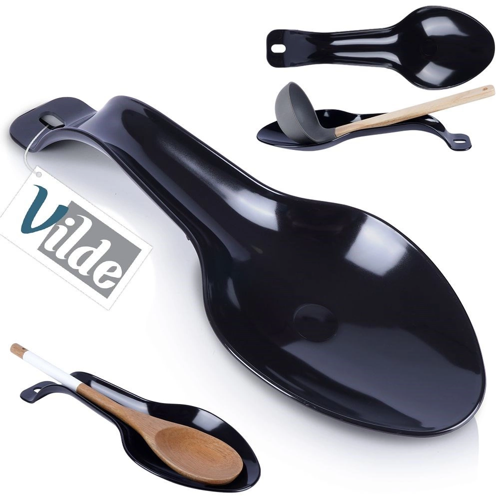 Tato praktická podložka na vařečky a naběračky pomáhá udržet čistou pracovní plochu během vaření. Díky tvarované misce zachytí kapky a zbytky omáček, takže se vyhnete lepkavým skvrnám na desce i vedle sporáku. Minimalistický, moderní design v černé barvě skvěle zapadne do každé kuchyně.