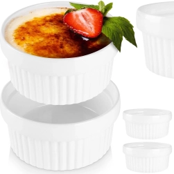 Tyto bílé keramické kokotky se žebrovanými stěnami vnesou do vaší kuchyně nadčasový vzhled a spolehlivý výkon. Keramika zajišťuje rovnoměrné pečení a udržení stabilní teploty, takže se perfektně hodí na krémové dezerty, nadýchané suflé i slané porce do ruky. Praktický okraj usnadňuje manipulaci a servírování přímo na stůl.