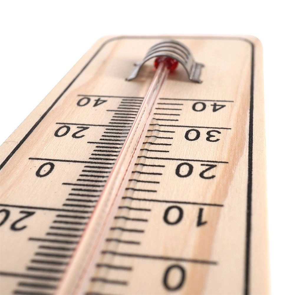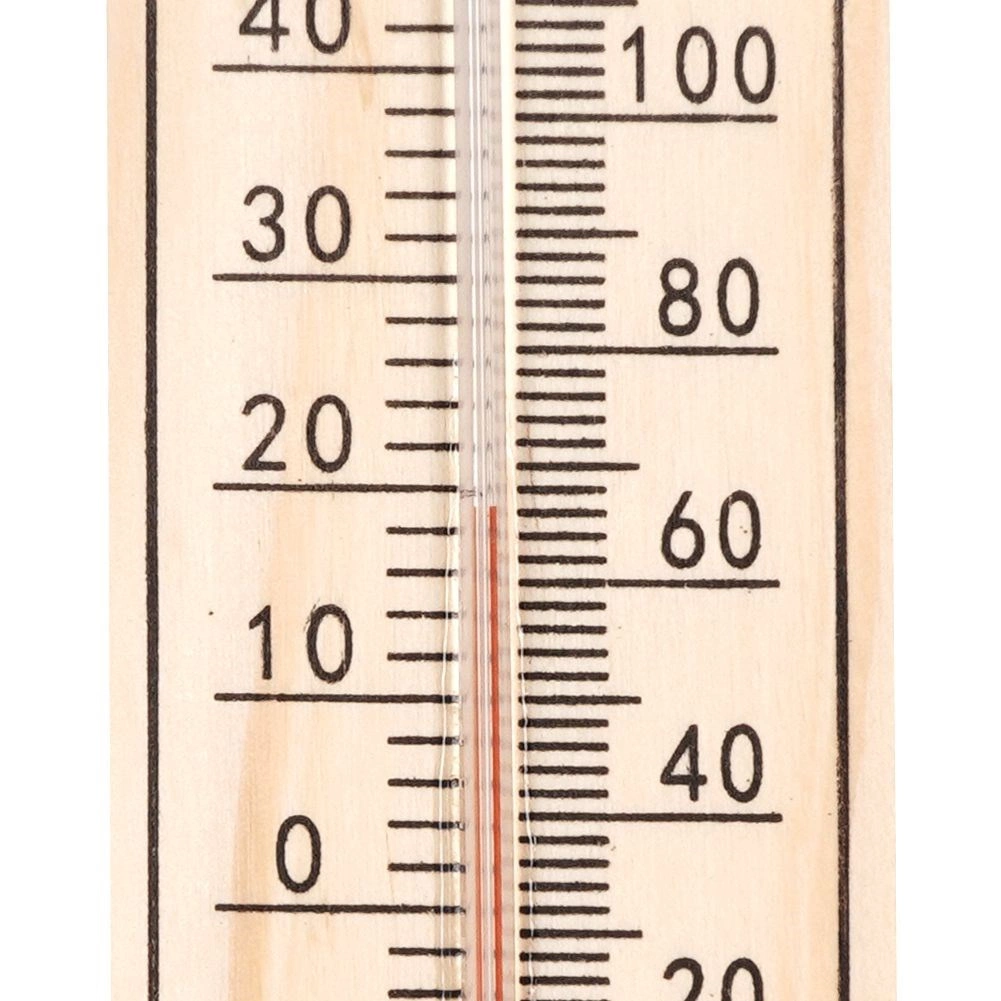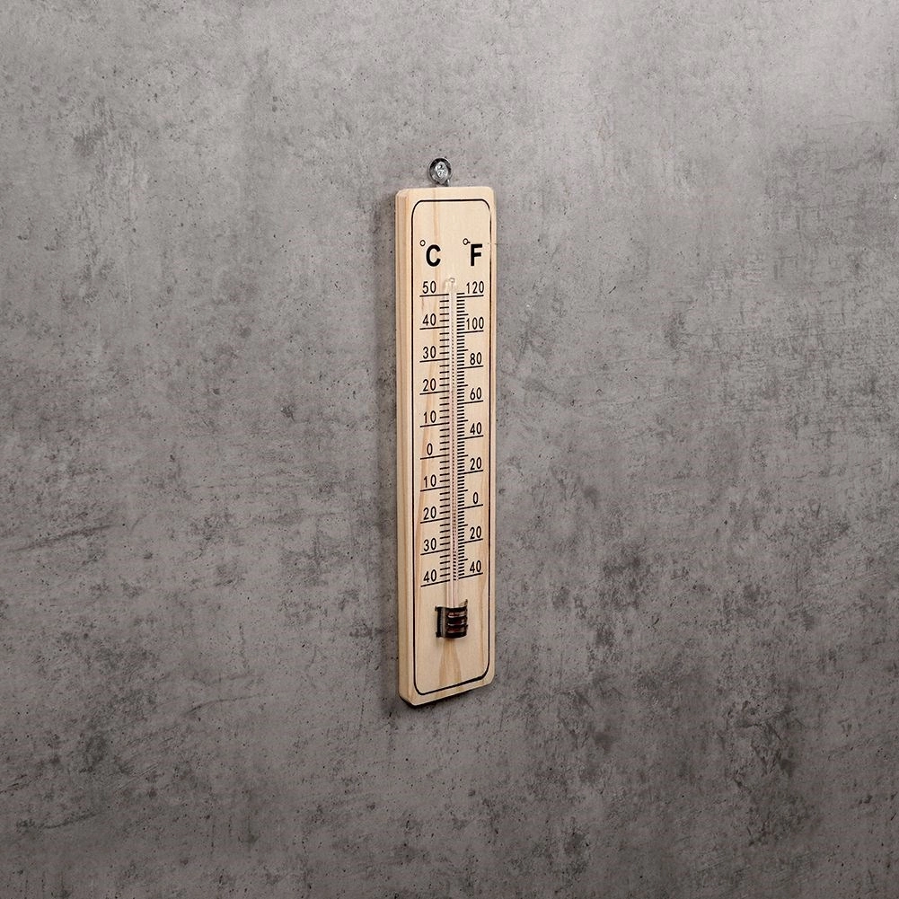Robustní tělo z odolné MDF a skleněná kapilára s barevnou kapalinou jsou chráněny kovovým klipem. Praktické závěsné očko umožňuje snadnou montáž na stěnu bez složitých nástrojů. Teplotní rozsah -40 °C až +50 °C (-40 °F až +120 °F) pokrývá běžné celoroční podmínky.