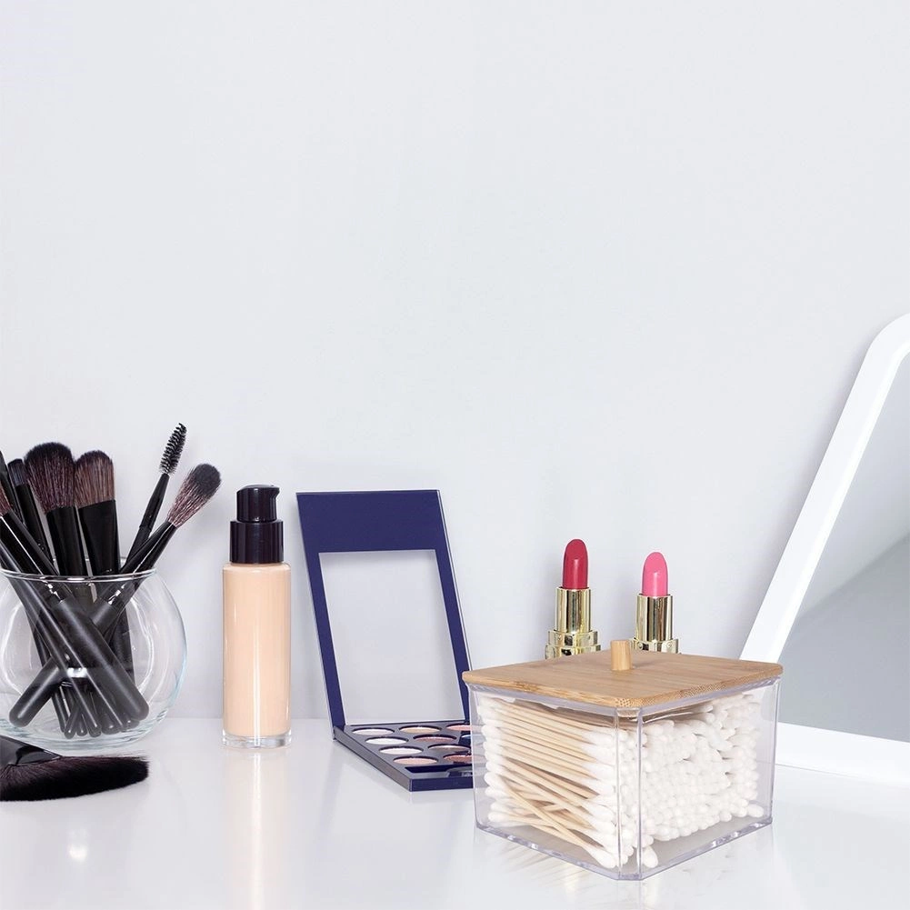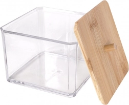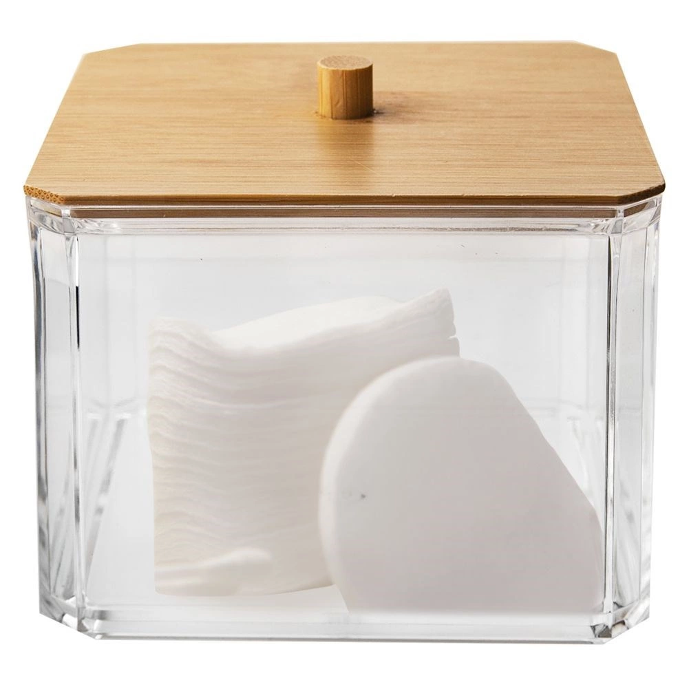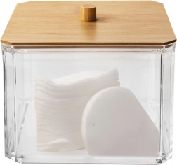 Tento elegantní box na vatové tyčinky kombinuje čiré stěny z odolného plastu a přírodní vzhled bambusového víčka s praktickým knopem. Skvěle se hodí do koupelny, ložnice i na kosmetický koutek – udrží drobnosti přehledně uspořádané a bez prachu.