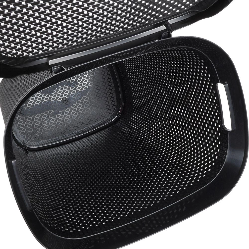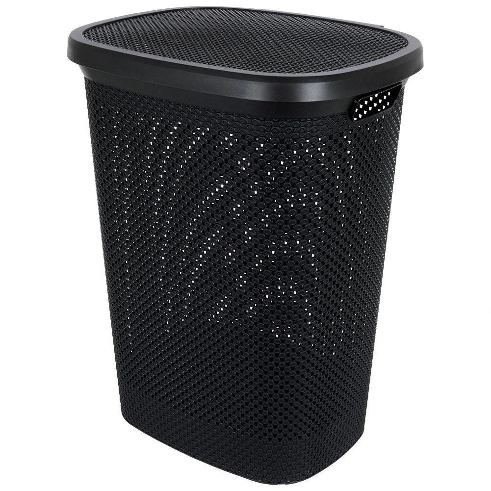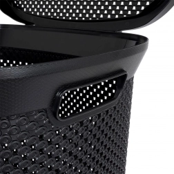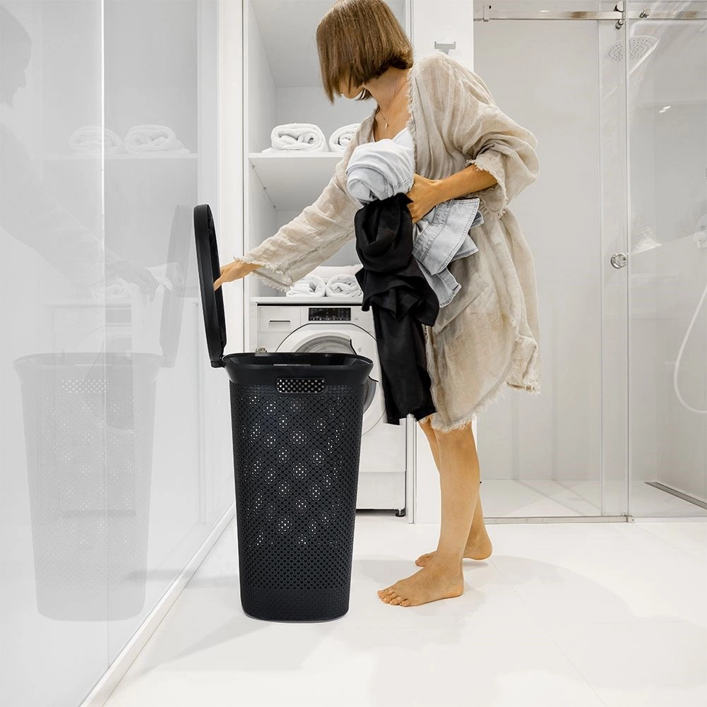 Praktický a stylový plastový koš na prádlo o objemu 60 litrů s uzavíratelným víkem a bočními úchyty. Díky větrané perforaci omezuje vlhkost a zápach, černý klasický design elegantně zapadne do každé koupelny či prádelny.