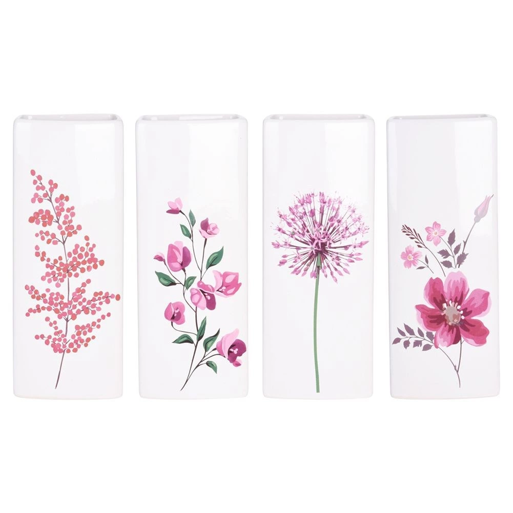 Bílá glazura a různé růžové květinové motivy působí čistě a dekorativně – hodí se do obýváku, ložnice i dětského pokoje.
