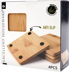 Bambus je odolný, lehký a ekologický materiál, který nenasákává pachy, rychle schne a je rozměrově stálý. Spodní strana podtácků je vybavena protiskluzovými podložkami pro maximální stabilitu a ochranu nábytku před poškrábáním. Ideální do domácnosti i kanceláře, k dennímu používání.